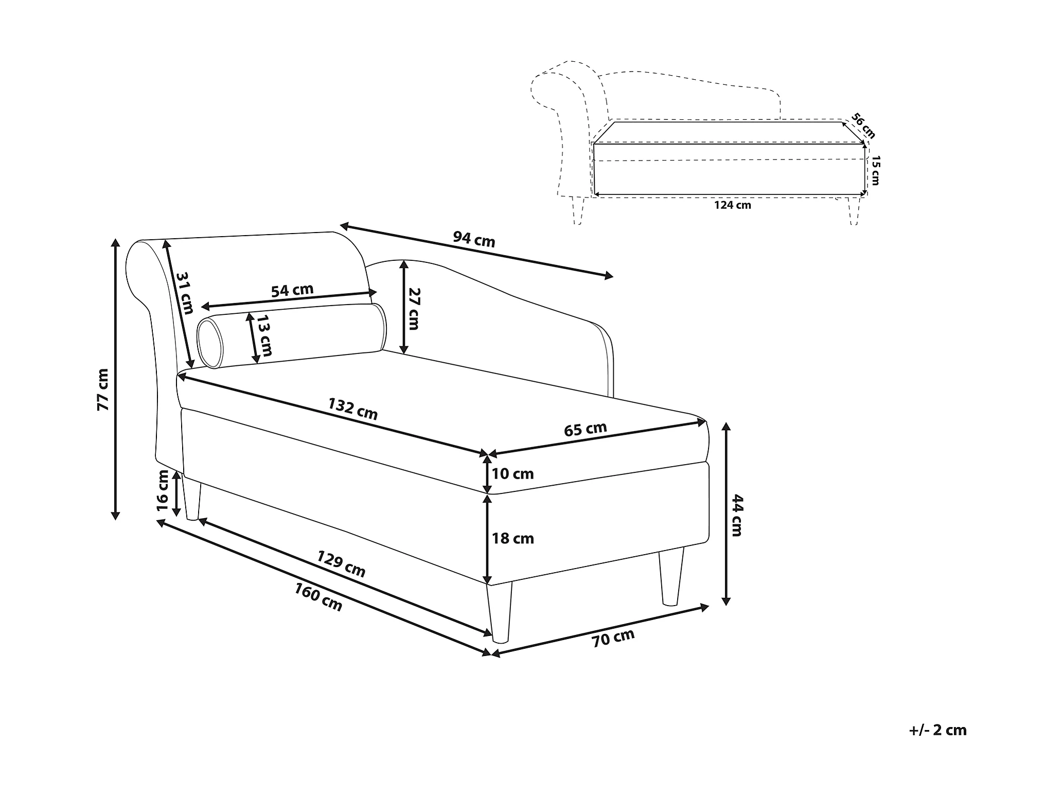 Chaise longue côté gauche LUIRO Velours Beige avec rangement