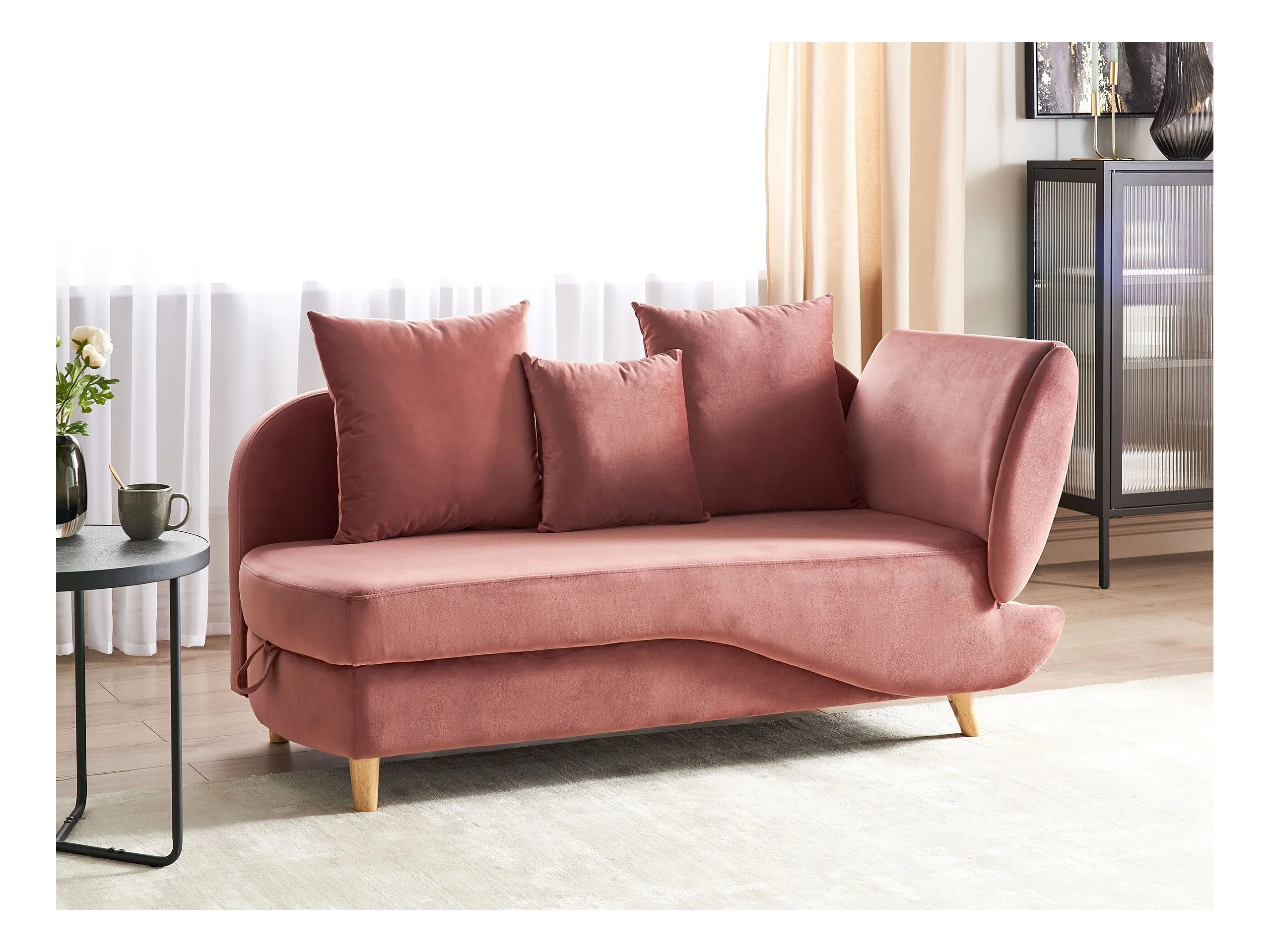 Chaise longue côté gauche en velours rose MERI II