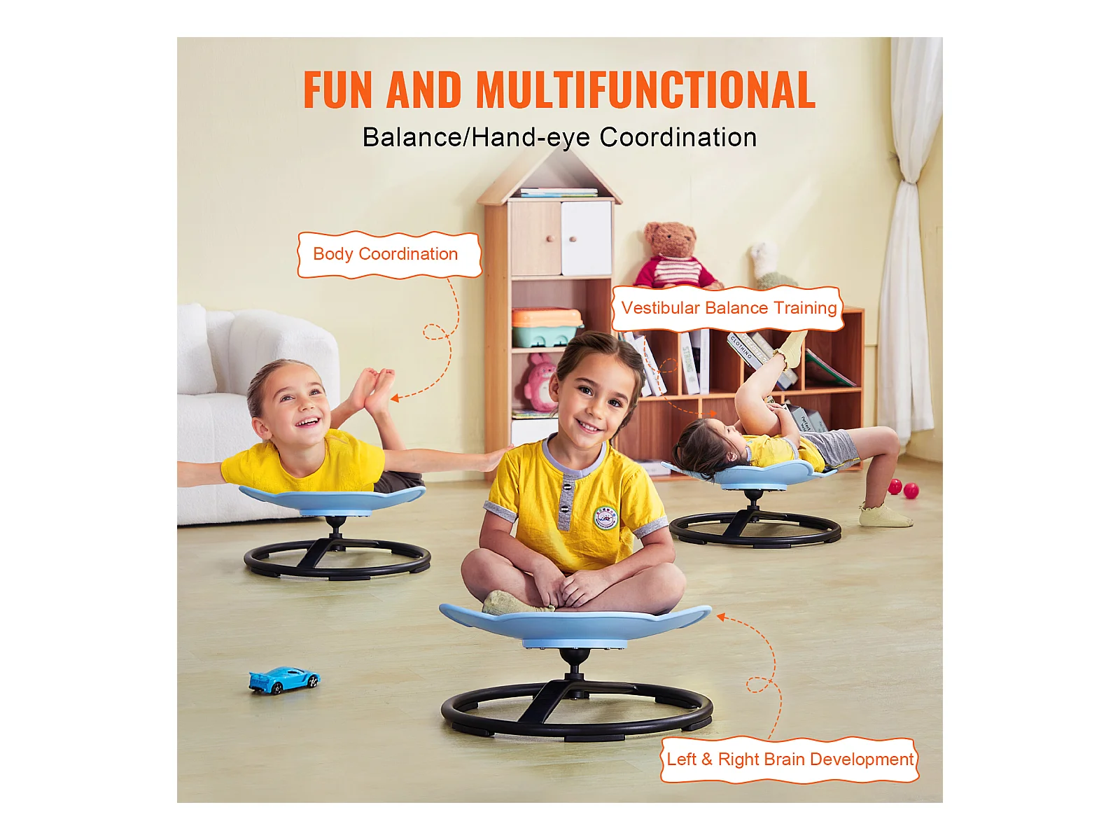 Chaise Pivotante pour Enfants SucceBuy Éléphant, D'une Capacité de 100 kg, une Chaise Pivotante Sensorielle en Bleu