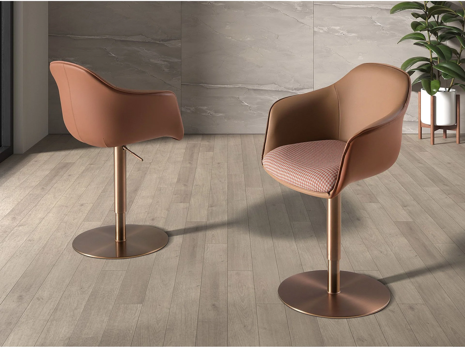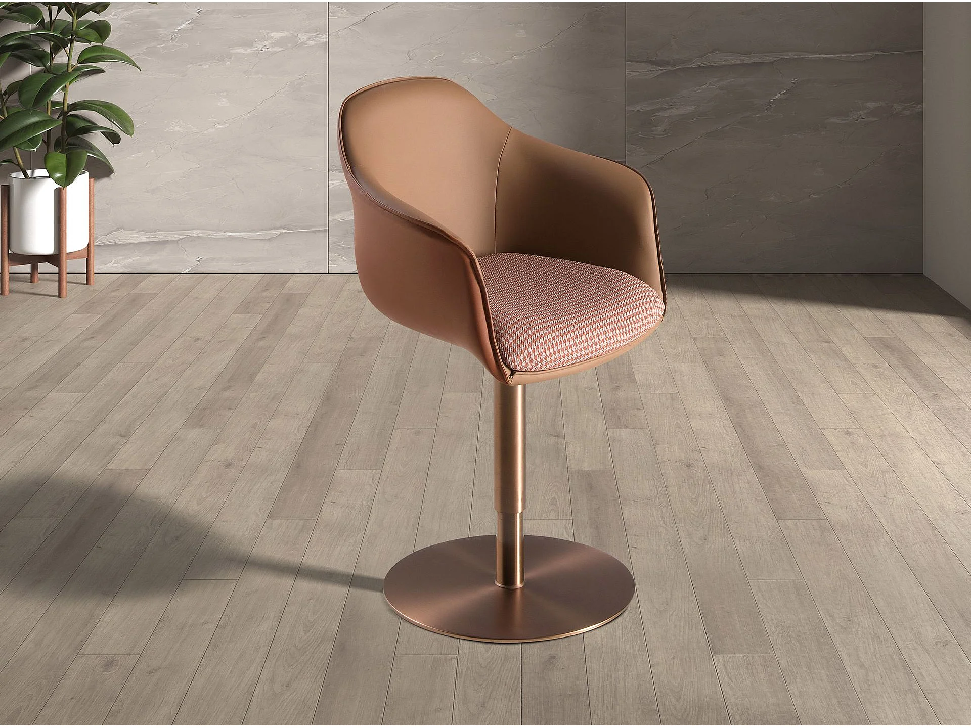 Chaise pivotante tissu marron terracotta et beige et similicuir marron 4235 ANGEL CERDA