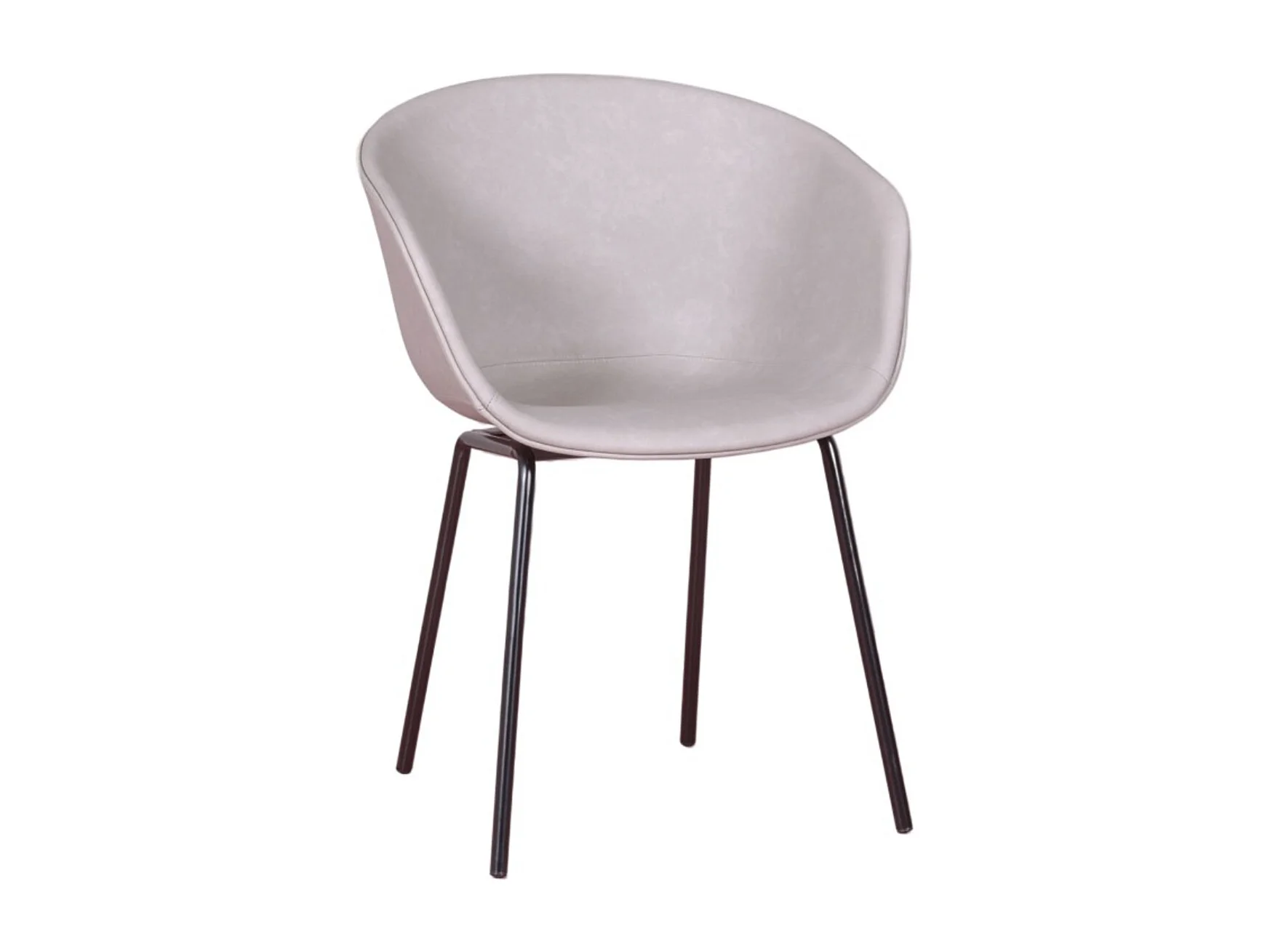 Chaise métal noir laqué et simili cuir gris clair Karry