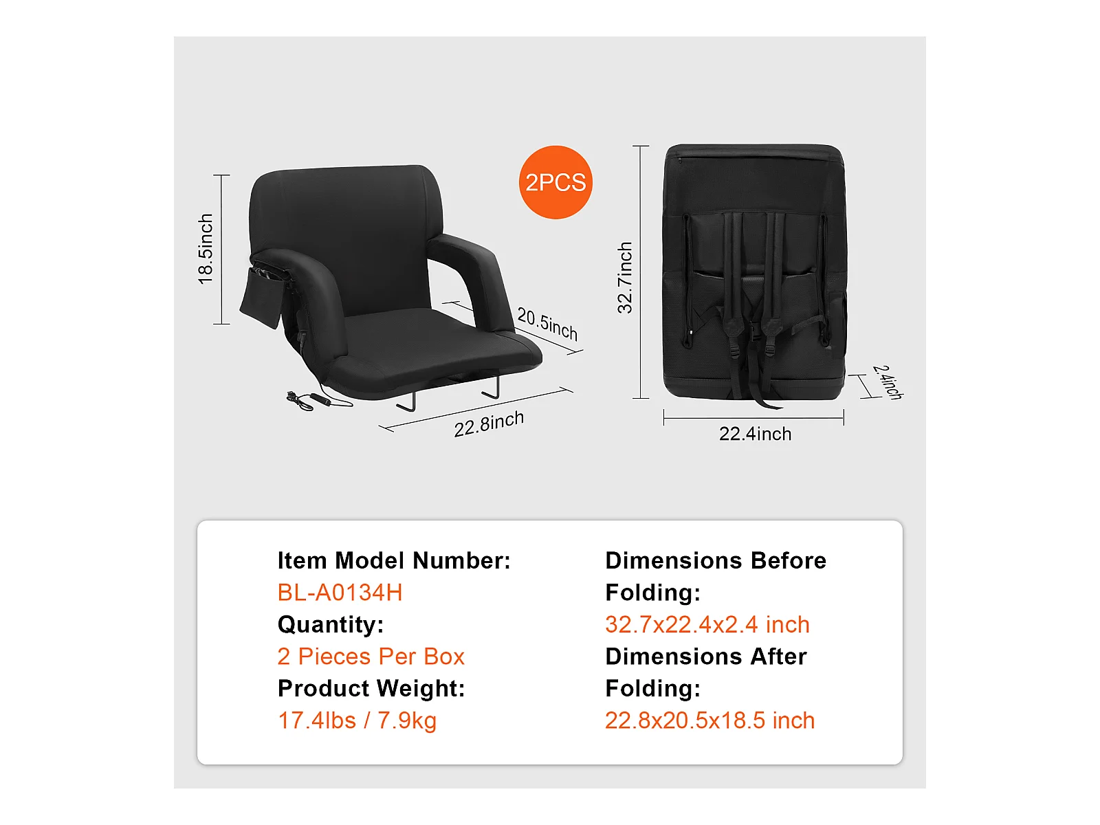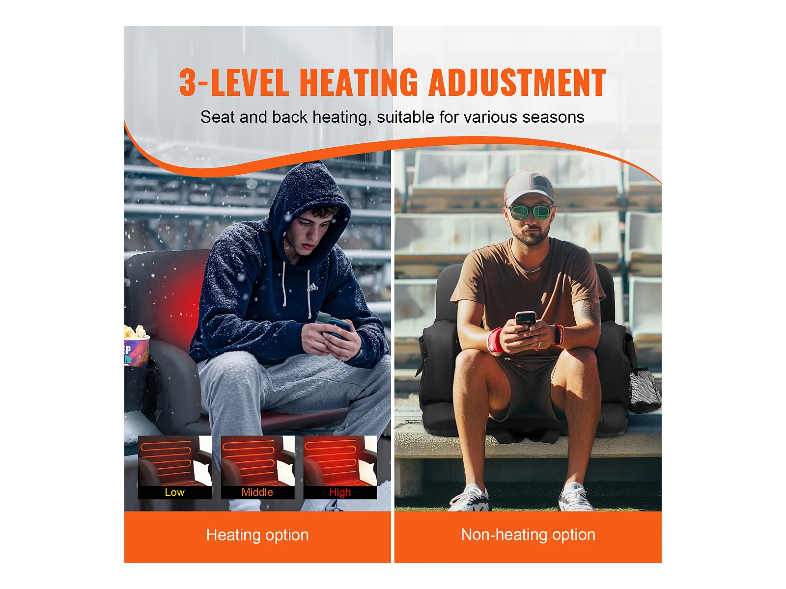 Chaise SucceBuy, Lot de 2 Sièges de Stade Chauffants Doubles, Support Dorsal, Inclinable, Chauffage à 3 Niveaux, pour Diverses Sorties