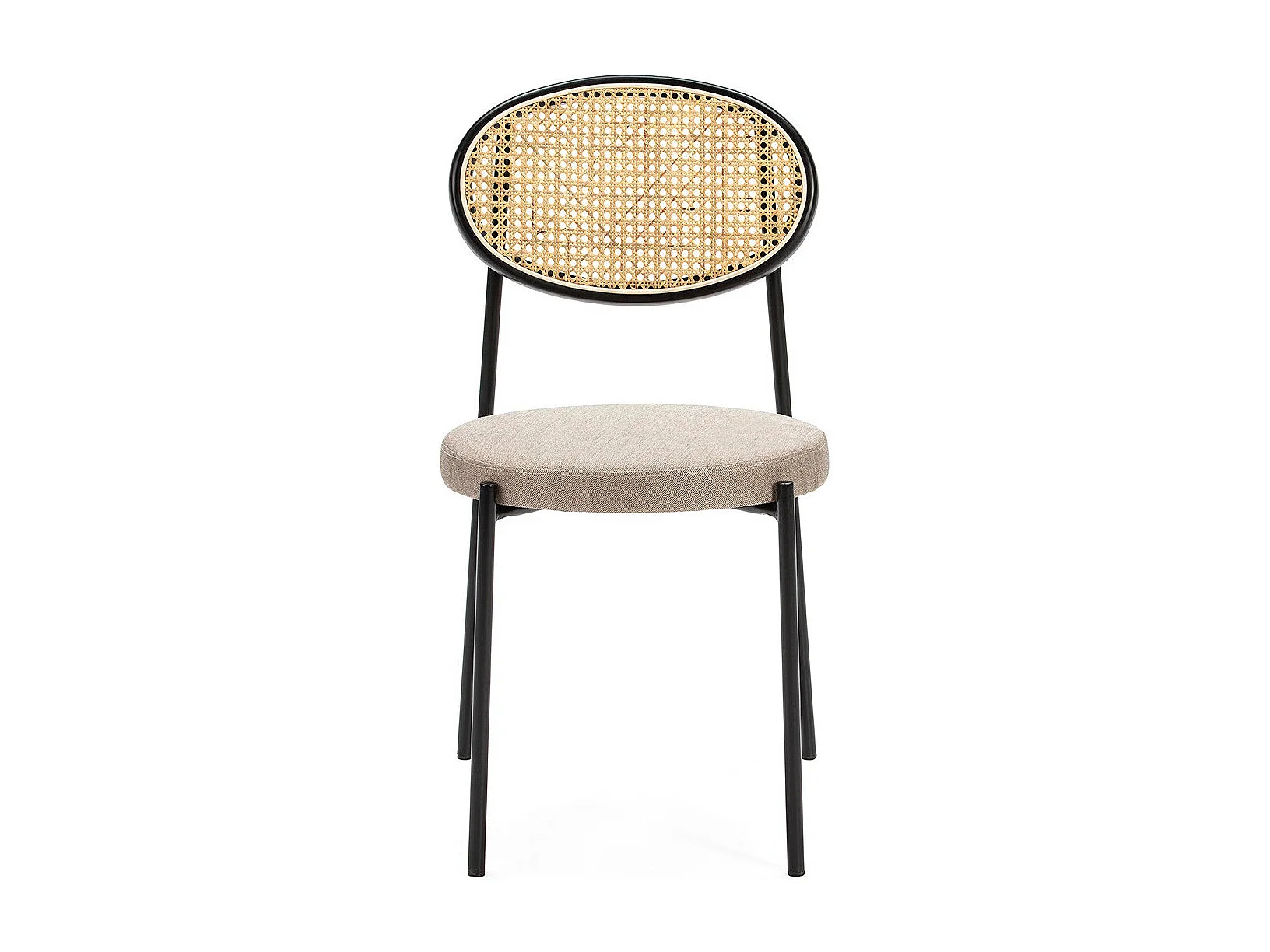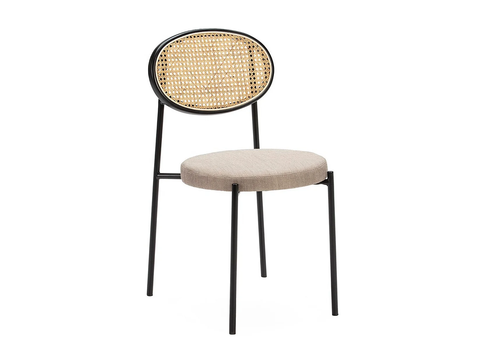Chaise tissu gris avec rotin naturel et métal noir Hery