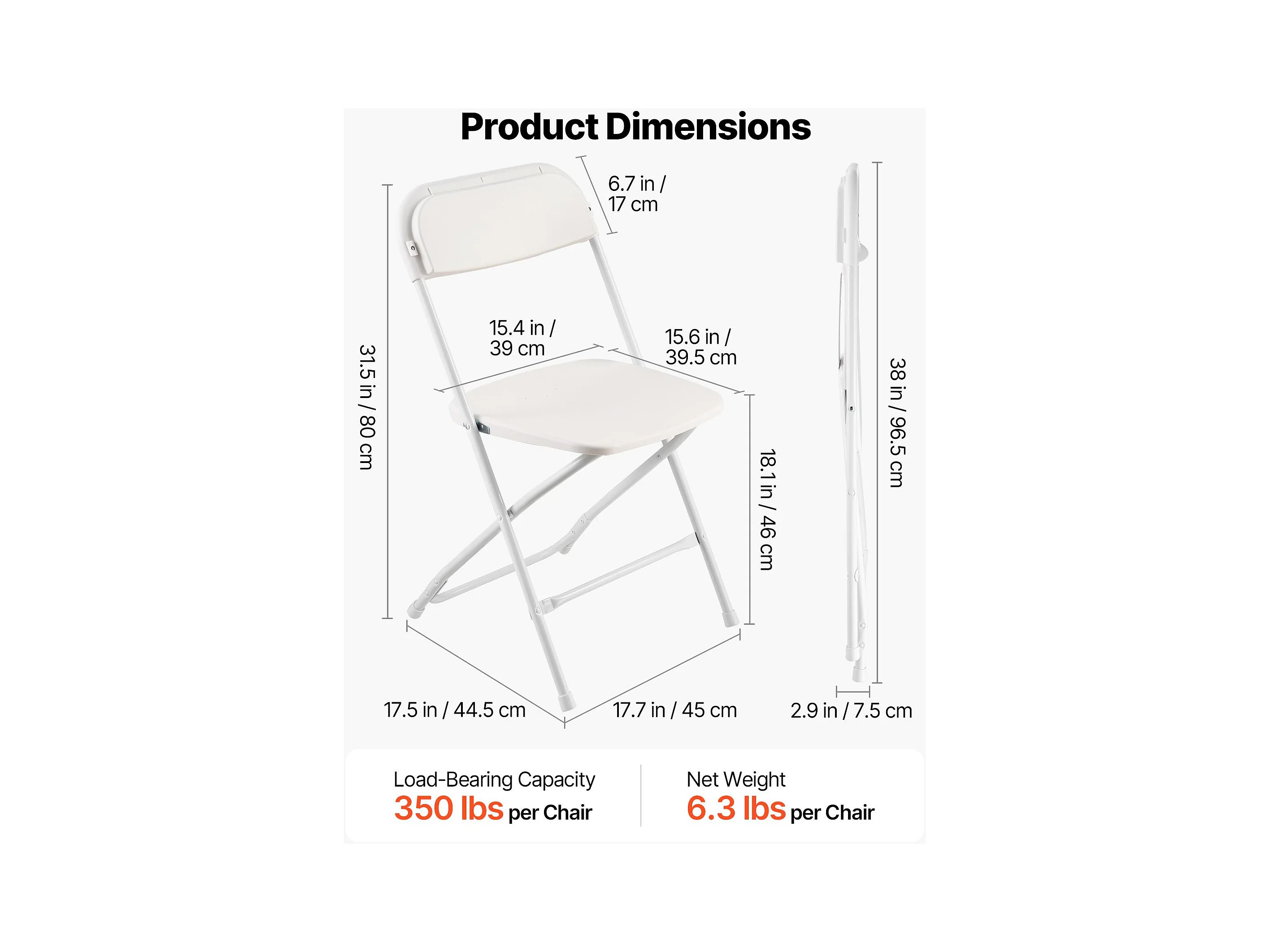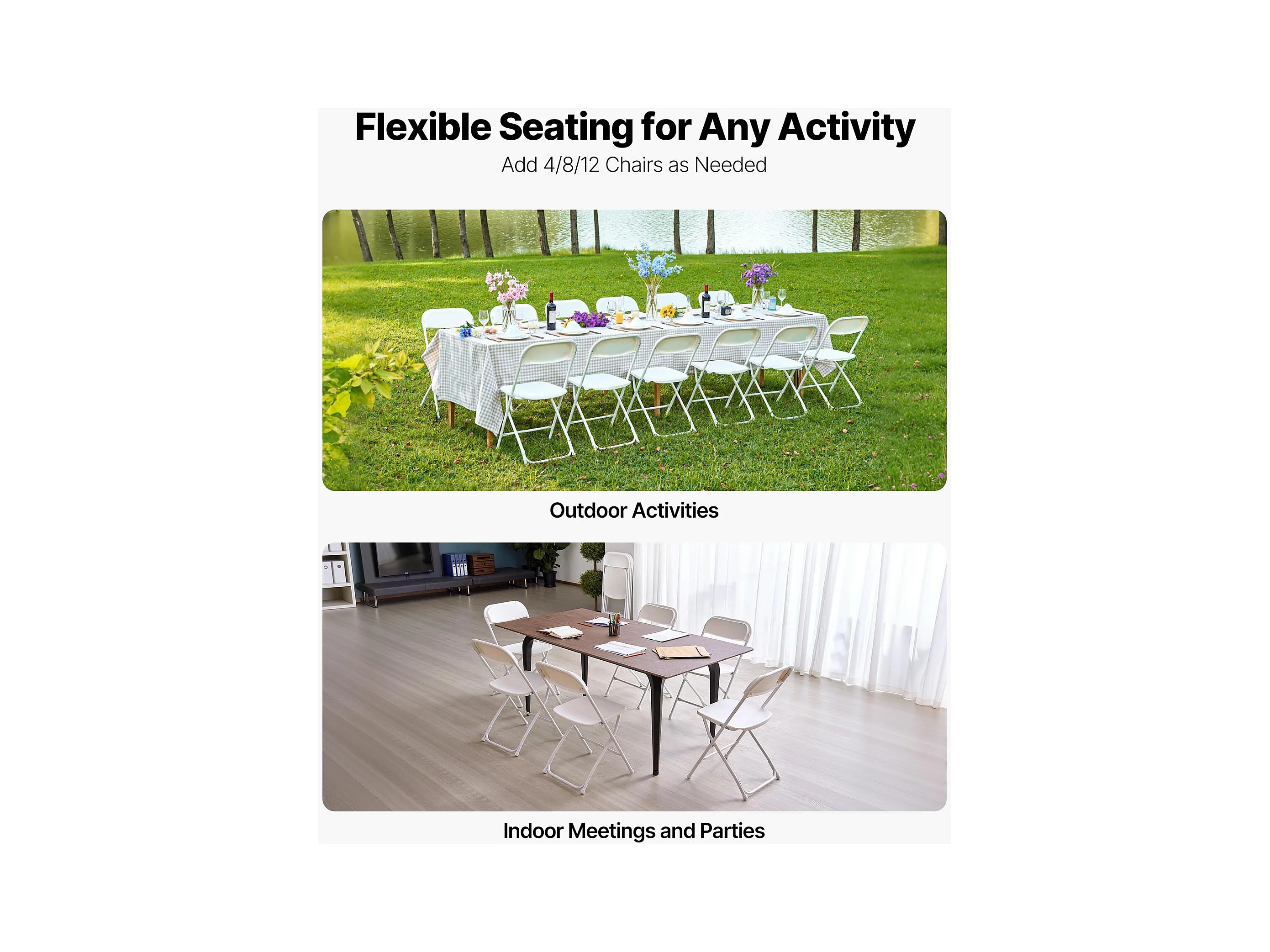 Chaises Pliantes SucceBuy Portables, Lot de 6, Chaise de Salle à Manger en Plastique avec Cadre en Métal, pour Intérieur et Extérieur, Maison, Jardin, Blanc