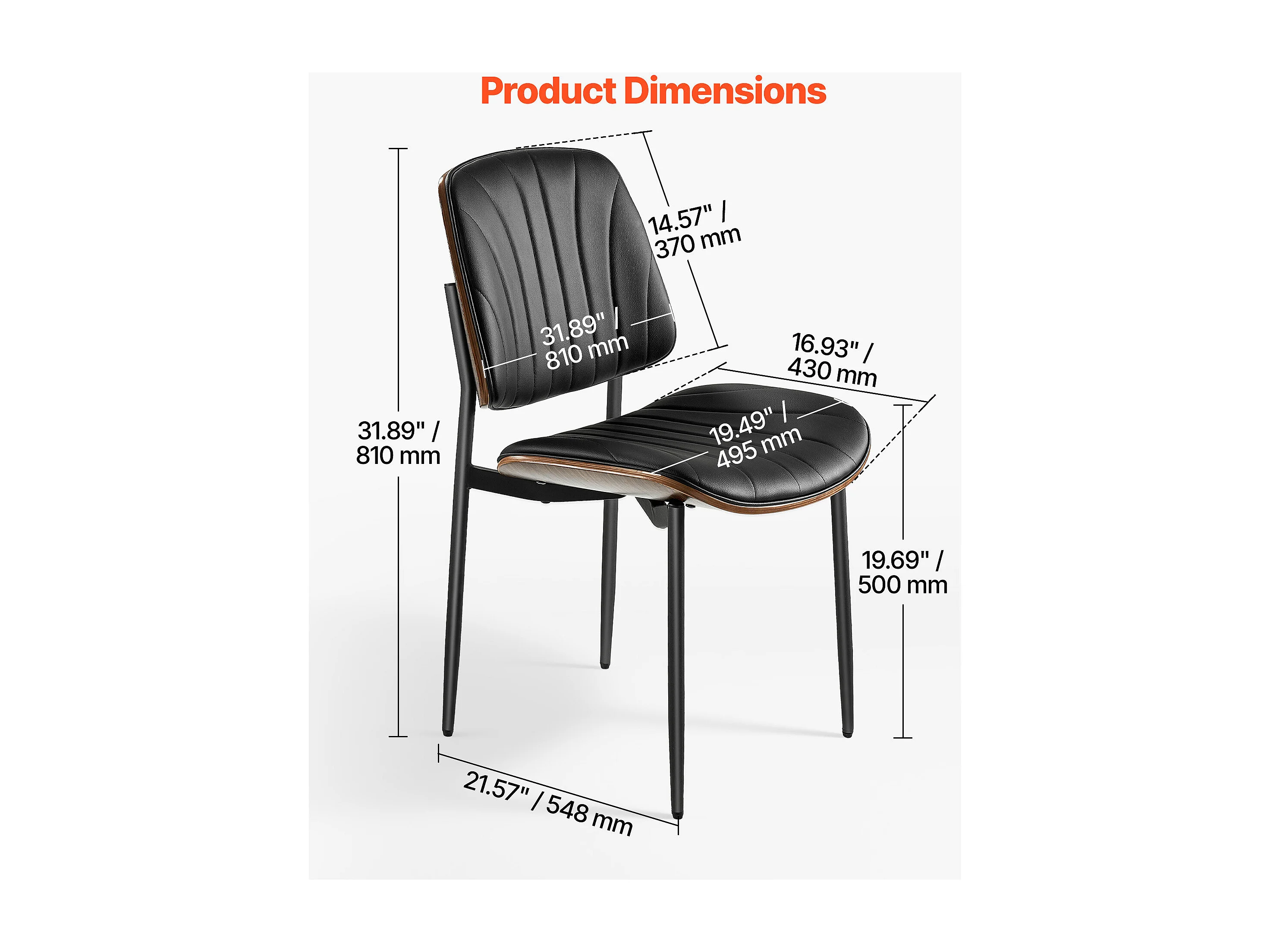 Chaises Salle À Manger Modernes SucceBuy, Ensemble Chaises de Cuisine en Cuir 2 Pièces, avec Dossier et Pieds en Métal, pour Table À Manger, Noir
