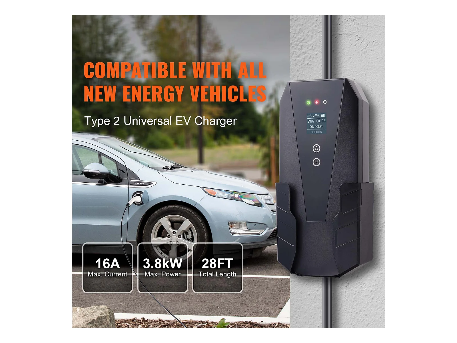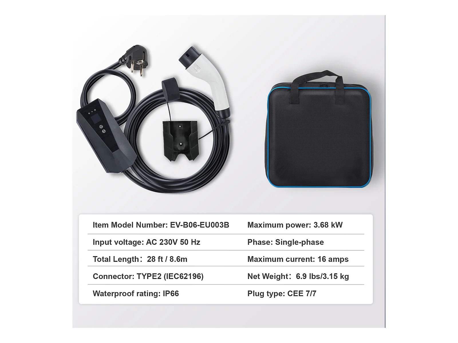 Chargeur Portable EV SucceBuy, Type 2, Prise CEE 7/7, 16A, 3,7 kW, avec Sac de Rangement et Crochet de Câble de Charge