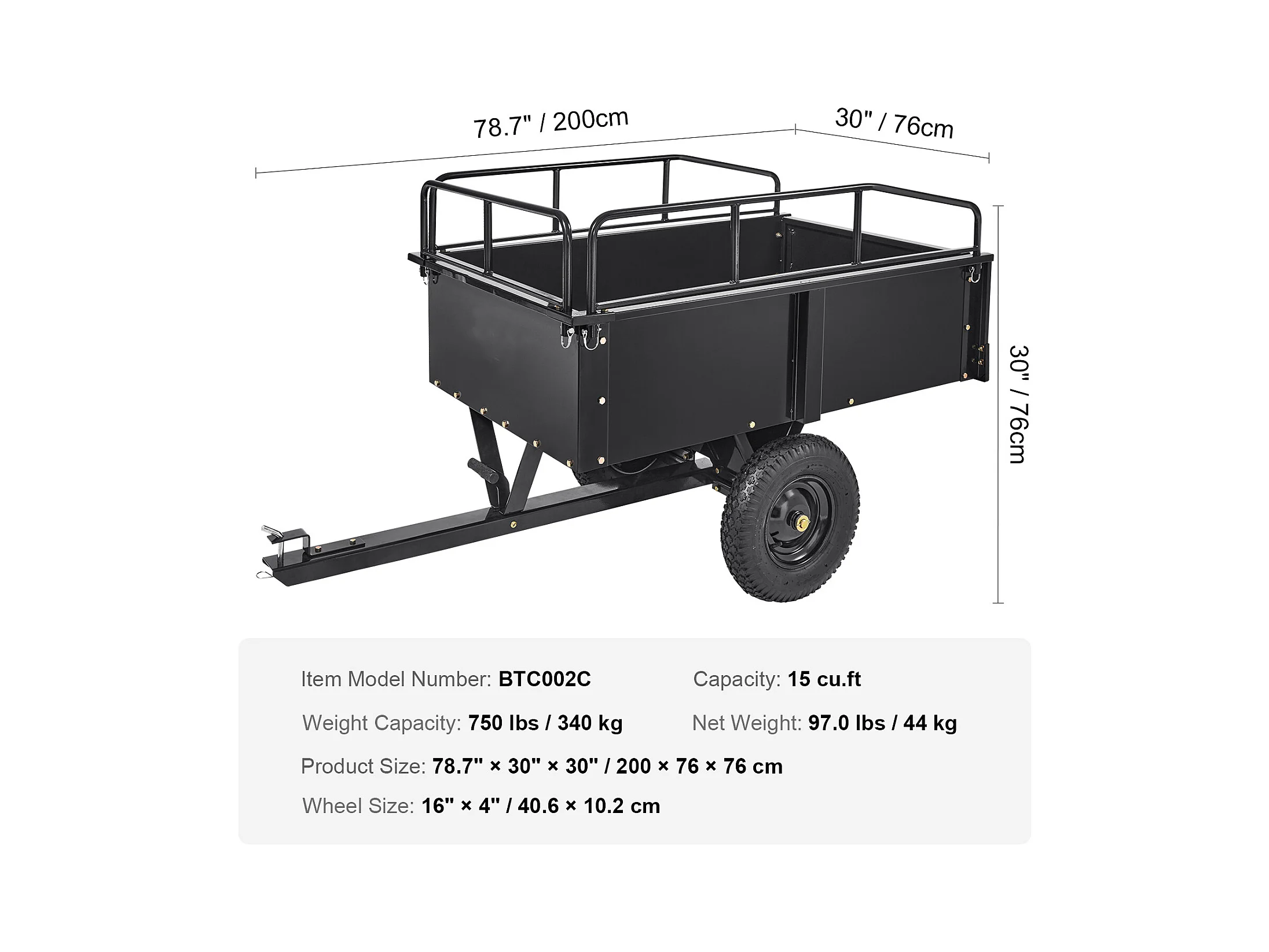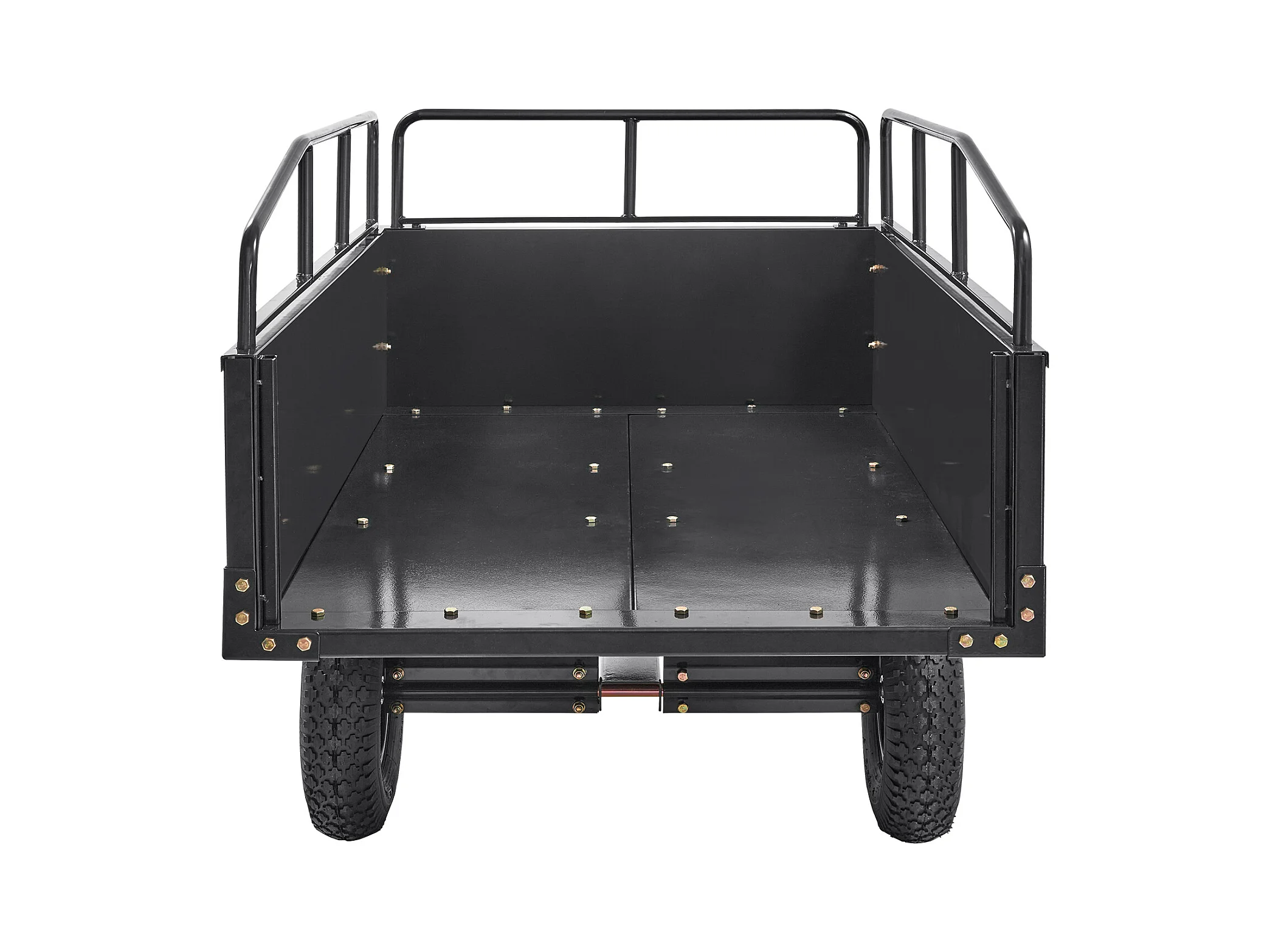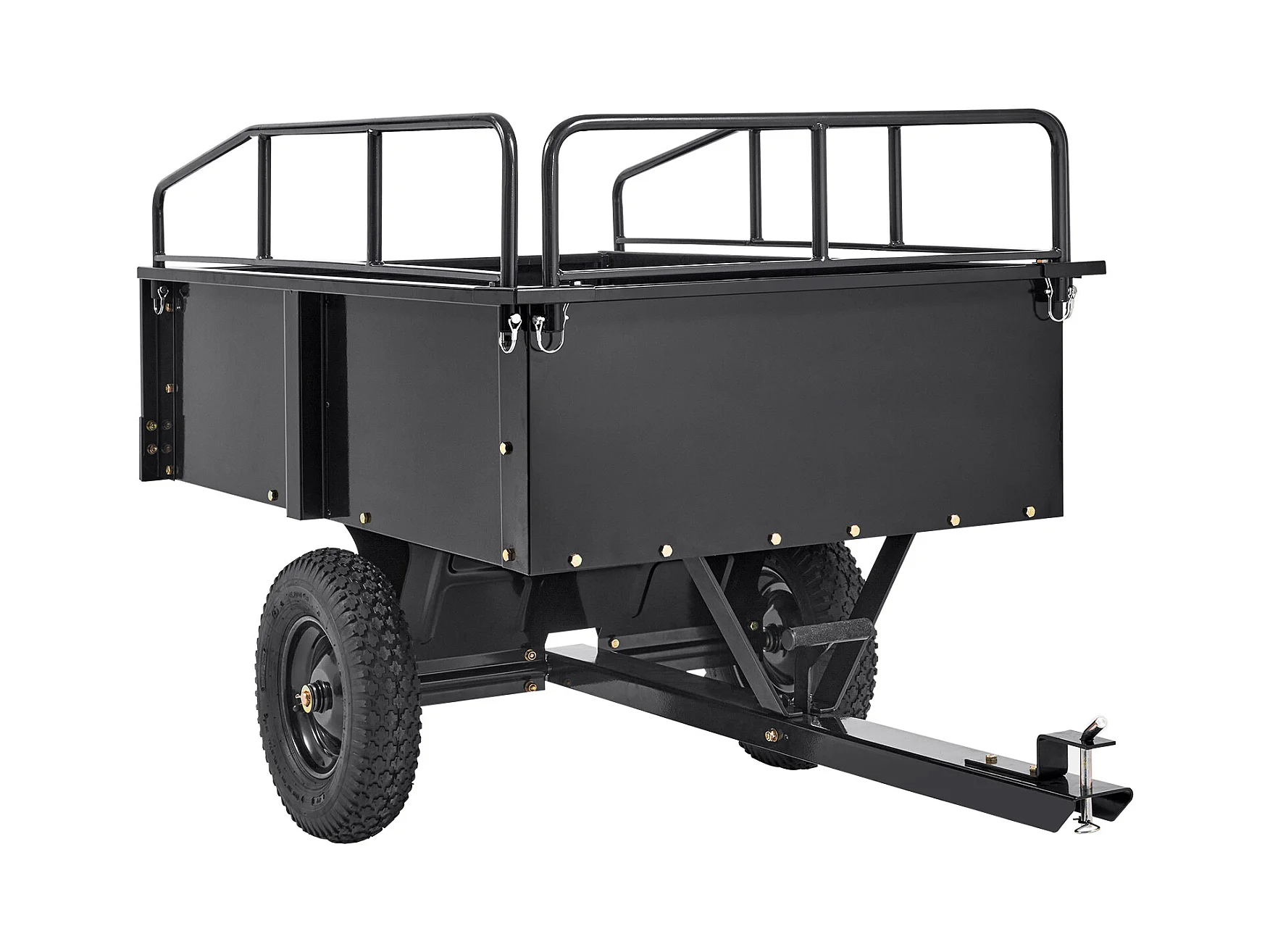 Chariot à Benne Basculante en Acier SucceBuy, Capacité de Charge 340 kg, 0.42 m3, pour Tracteur, Tondeuse à Gazon, VTT