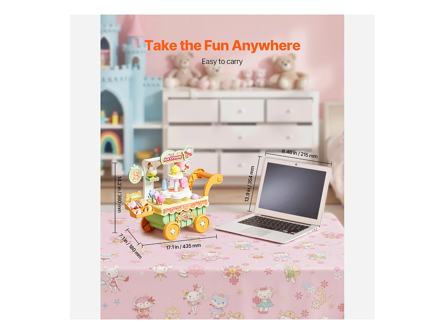 Chariot à Glaces pour Enfants SucceBuy, 27 Pièces, Jeu d'Imitation de Stand Glacier, avec Espace de Rangement, pour Tout-Petits de 3 Ans et Plus