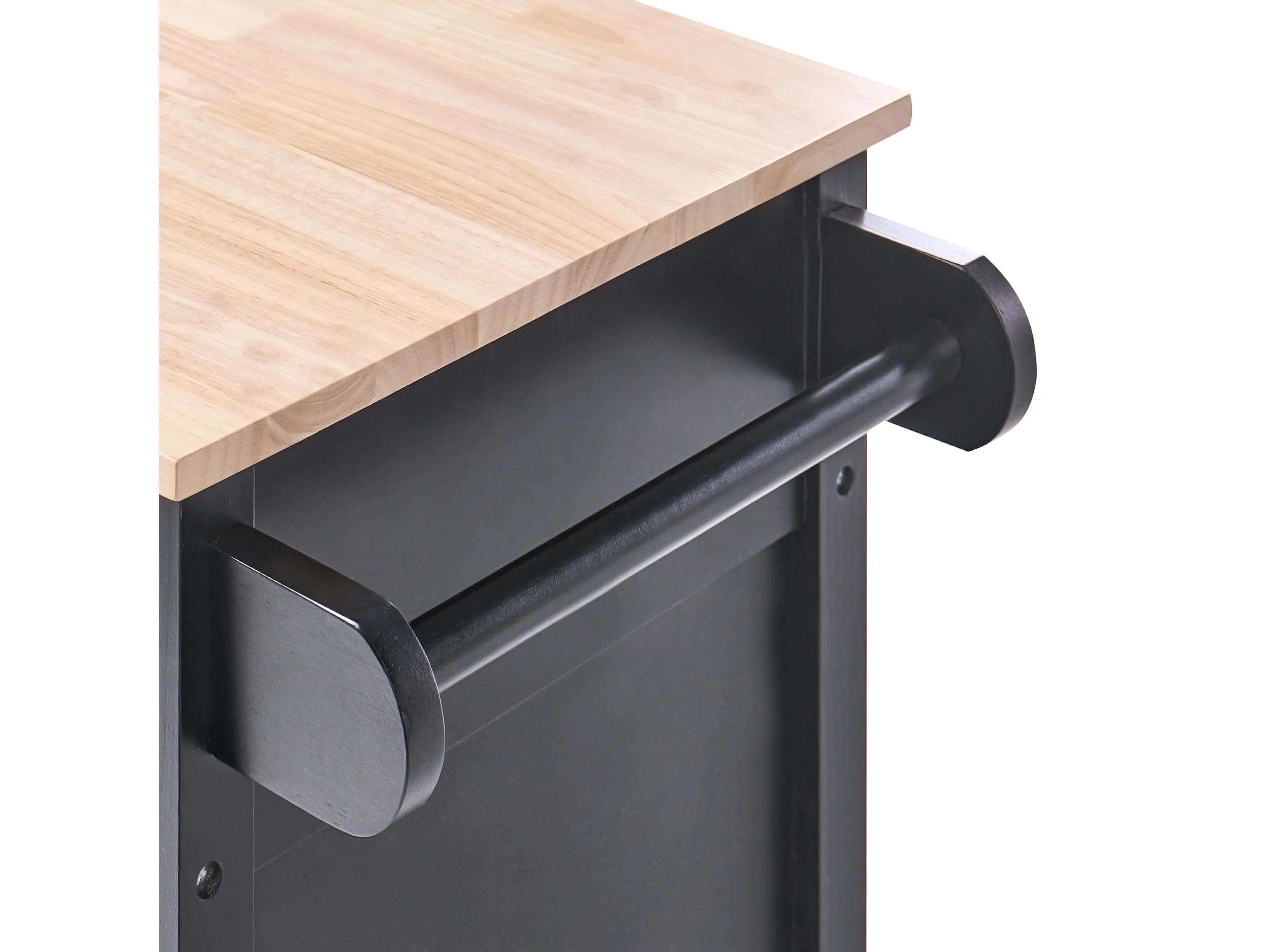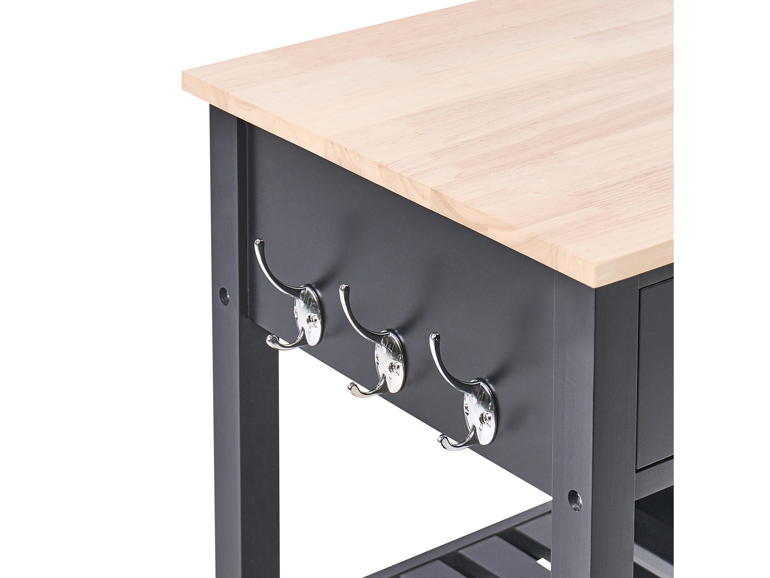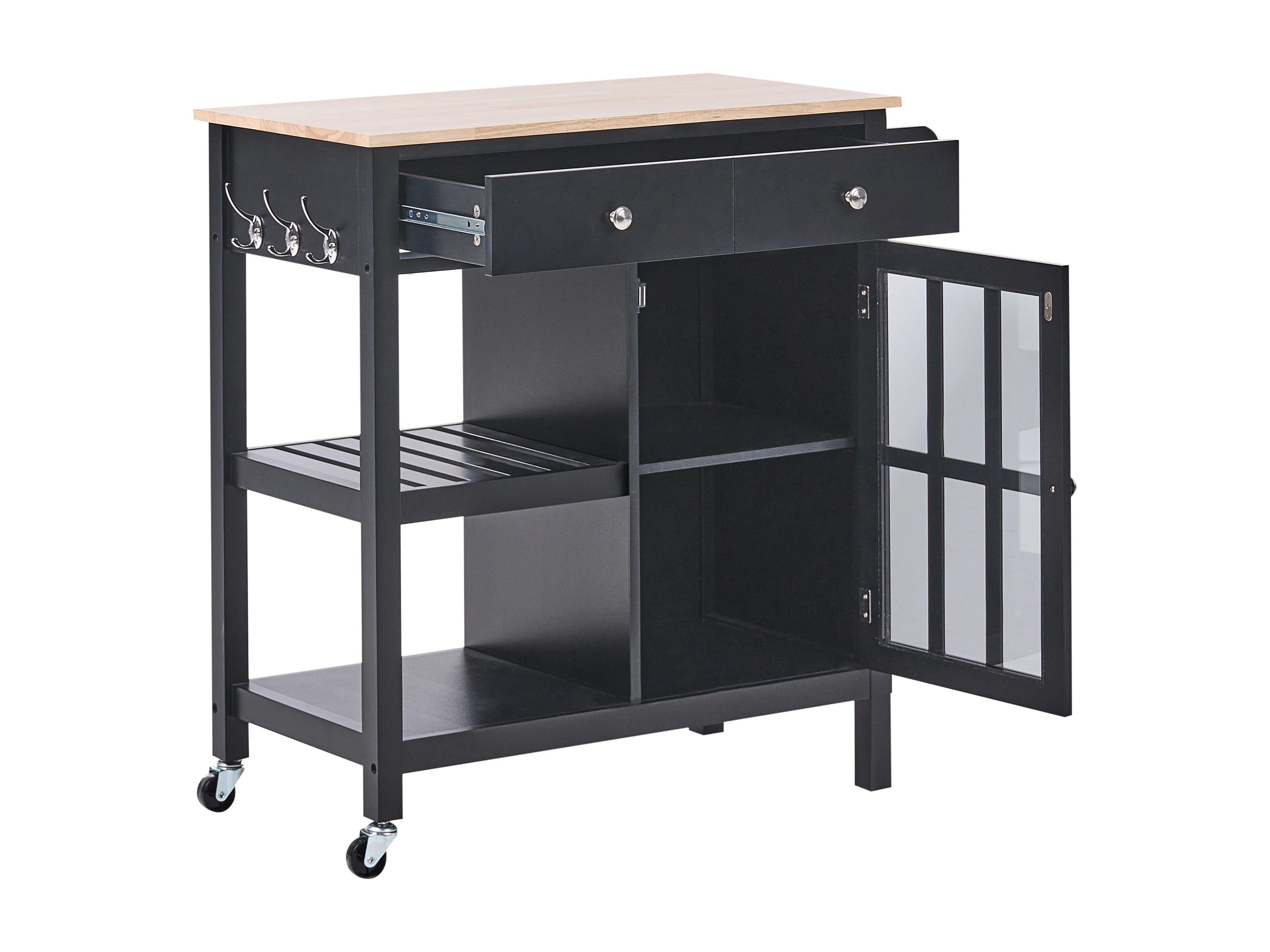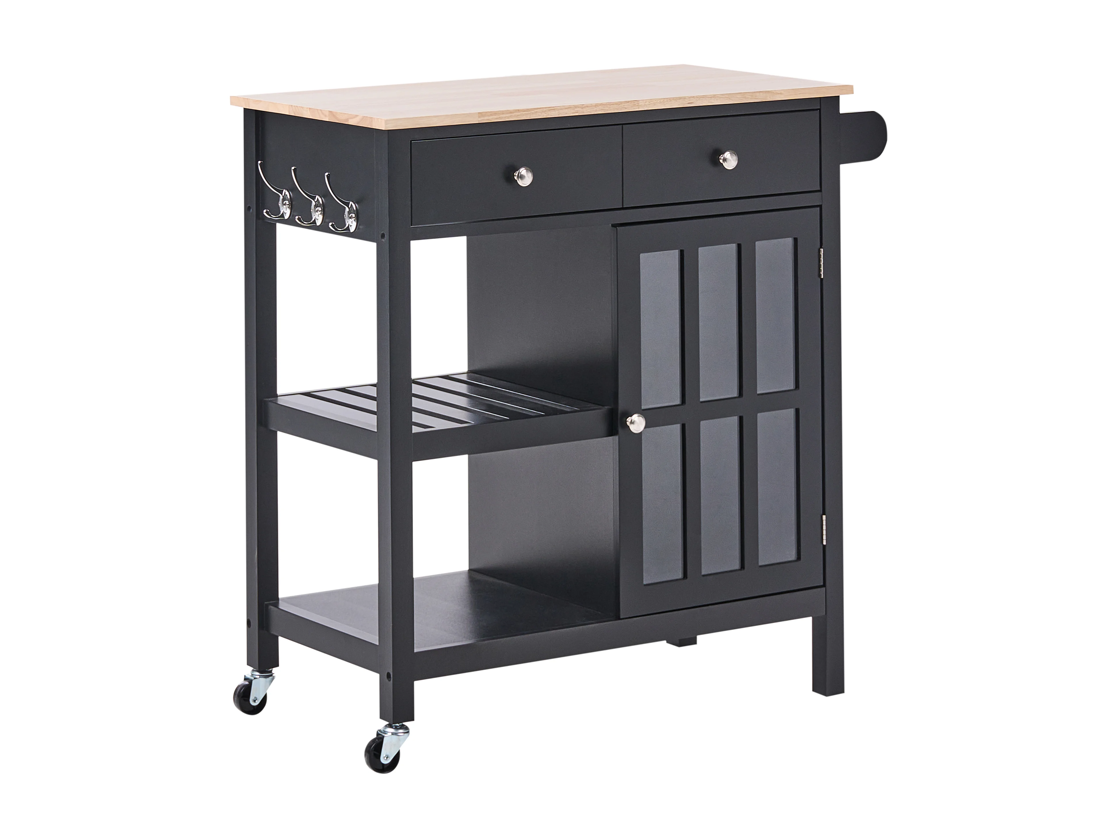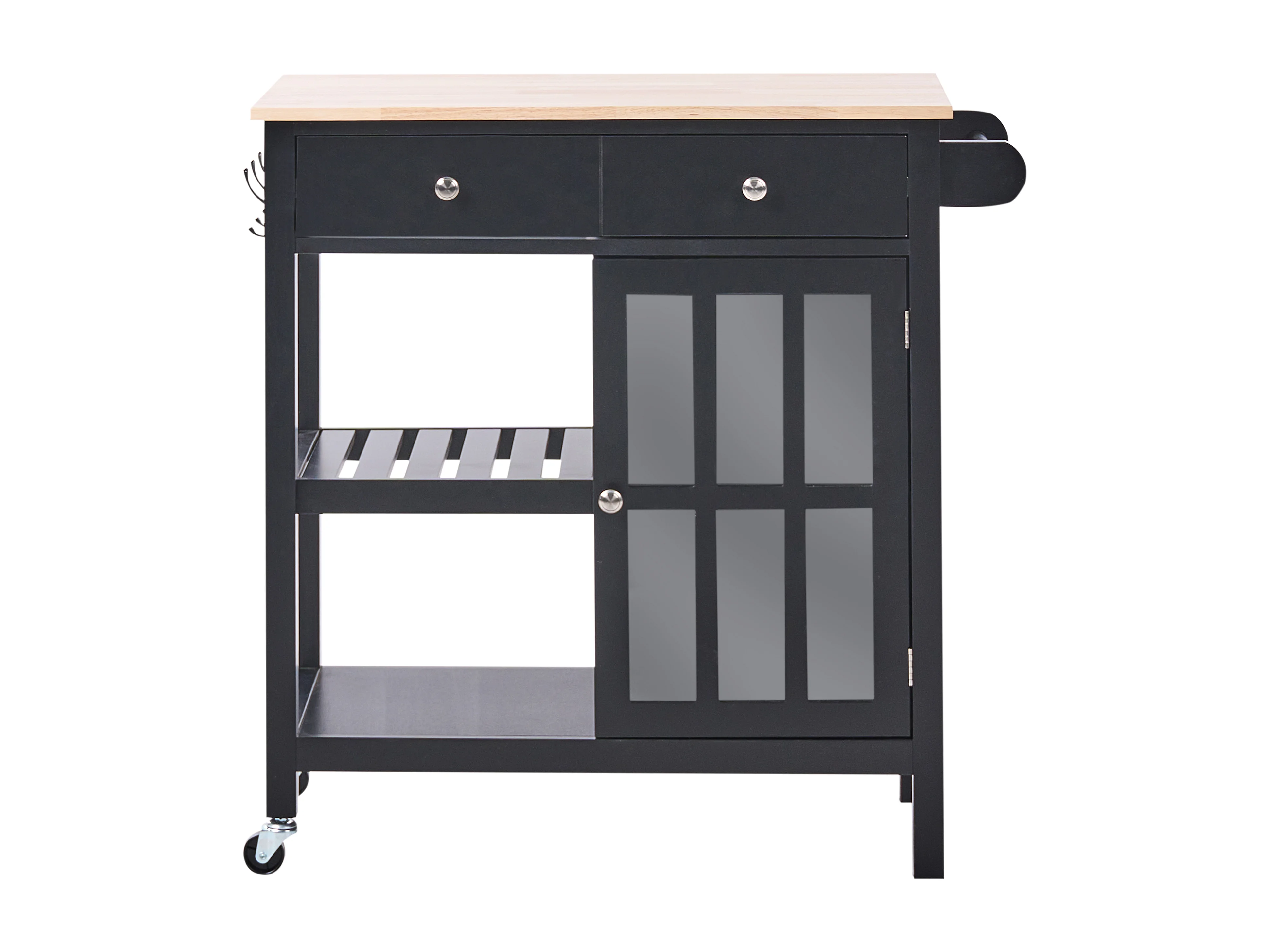 Desserte de cuisine à roulettes avec 2 tiroirs et 3 portes, plateau extensible en finition bois, noir