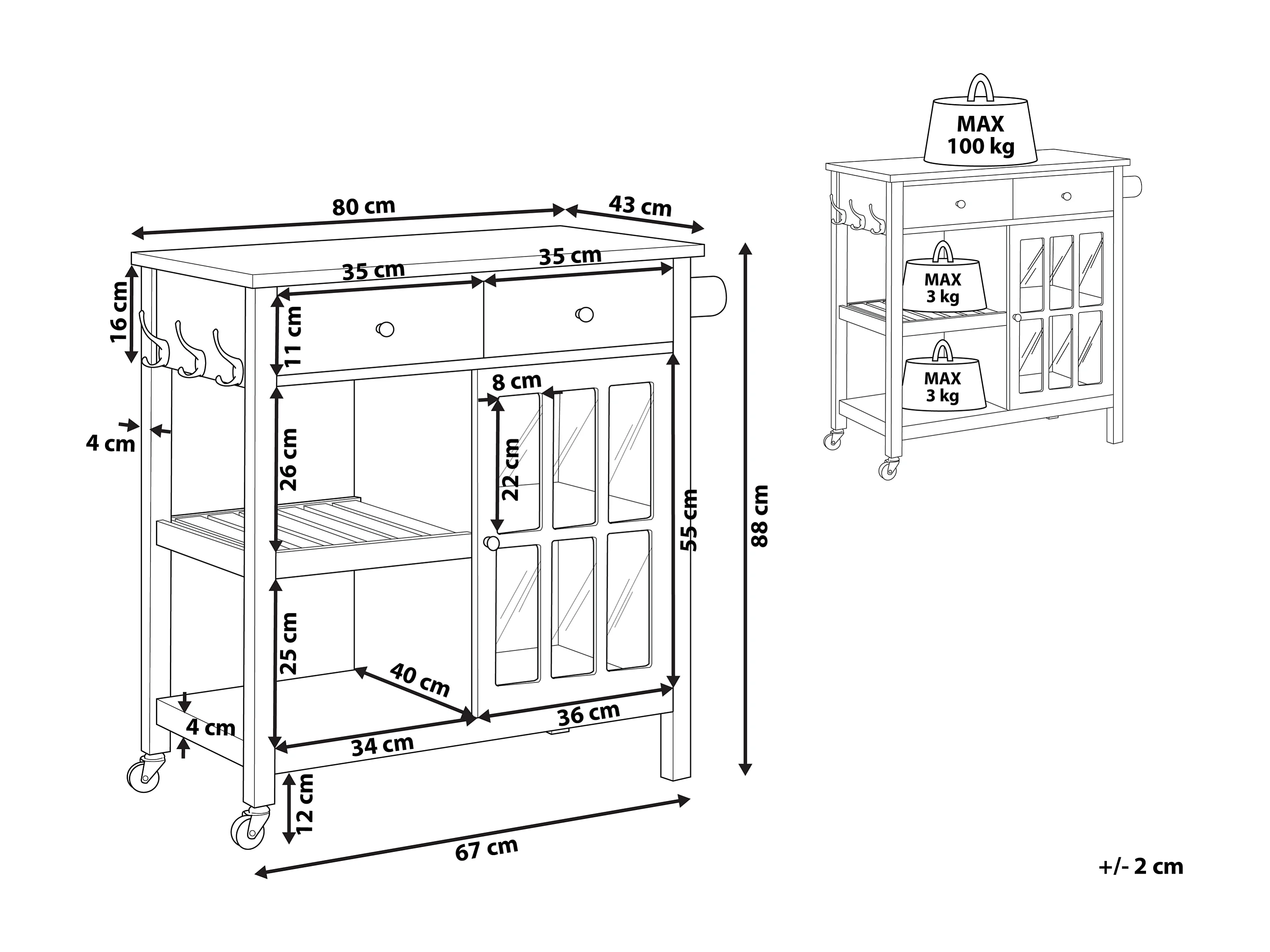 Desserte Roulante Chariot De Cuisine À Roulettes Buffet Avec Etagère Latérale, Fkw113-sch