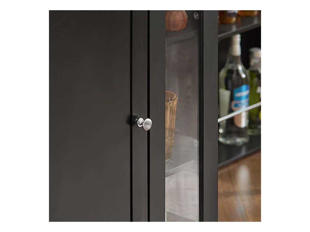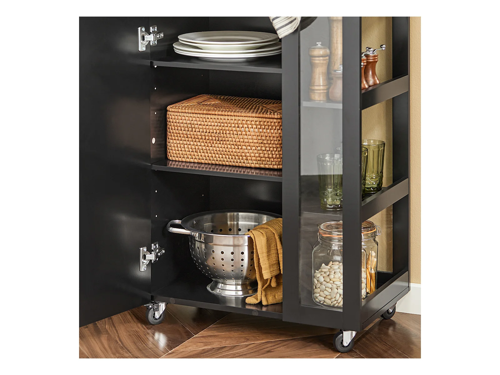 Desserte de cuisine multi-rangements 1 tiroir placard 2 portes avec étagère porte-torchons MDF noir acier inox.