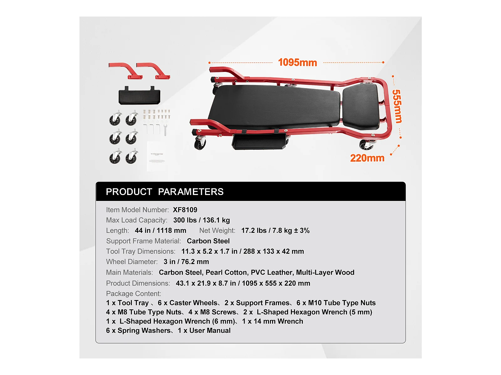 Chariot de Visite SucceBuy 102cm sous le Tableau de Bord Creeper 150kg Roulant, Hauteur Réglable