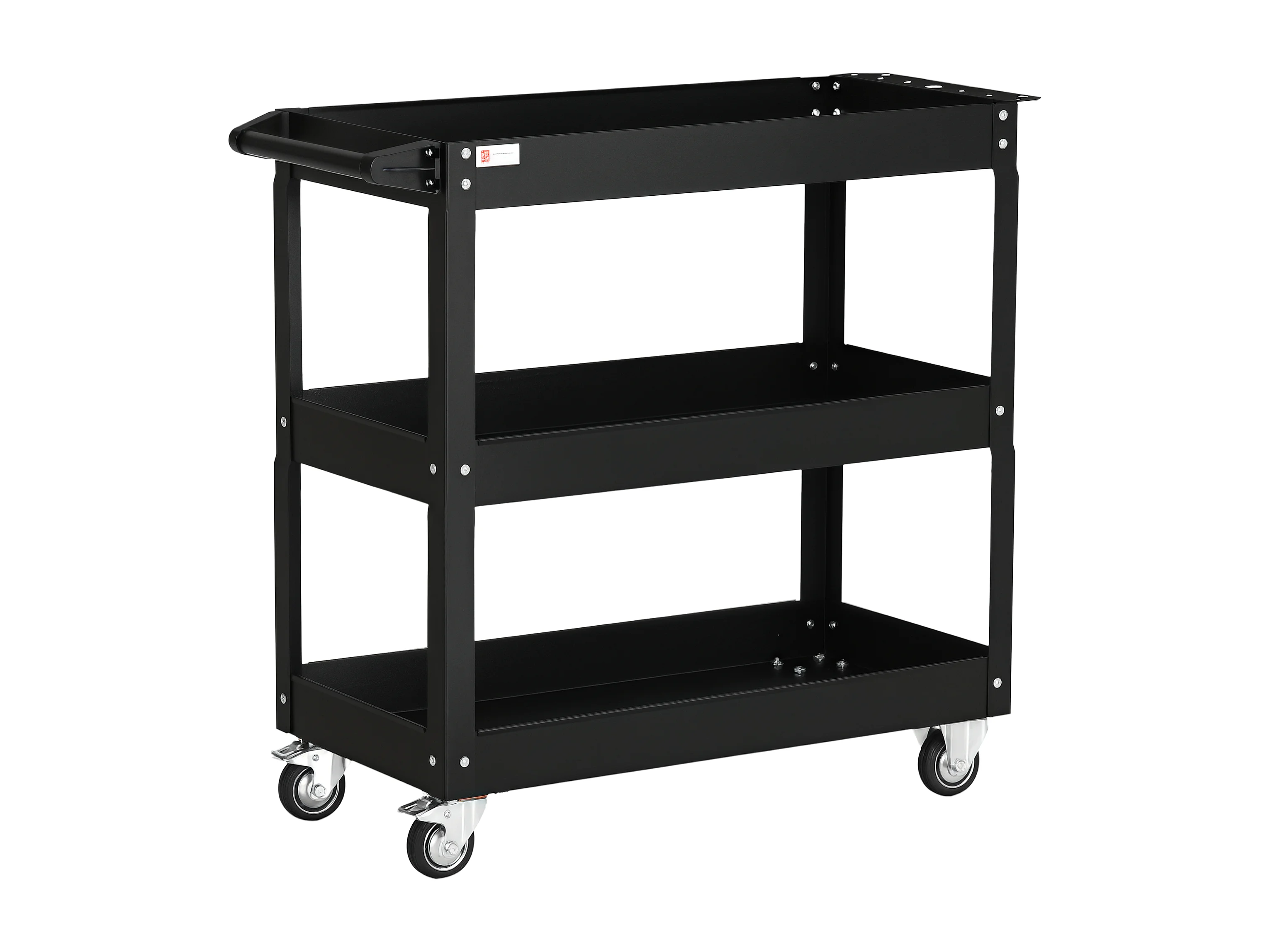 Chariot desserte d'atelier acier 3 plateaux sur roulettes avec poignée - charge max. 150 kg - 83 x 35,3 x 76 cm noir