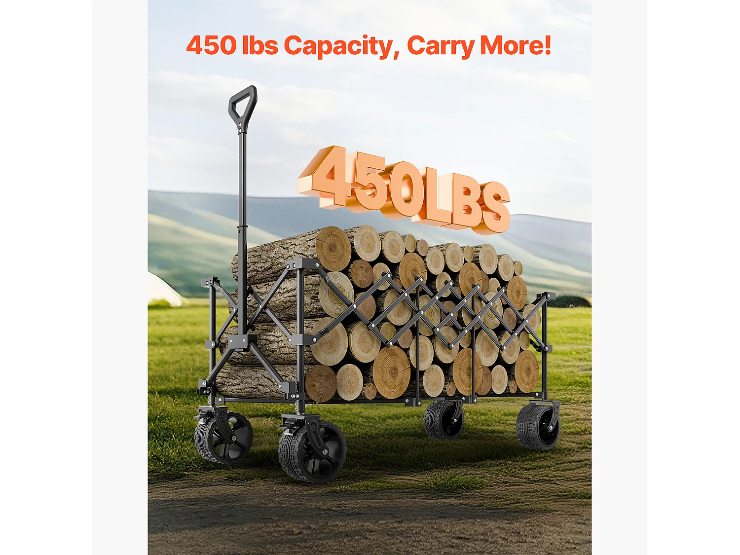 Chariot Pliable SucceBuy Chariot de Jardin Pliable Robuste 300 L 204.11 kg avec Longue Poignée pour l'Extérieur Cadre en Acier Durable