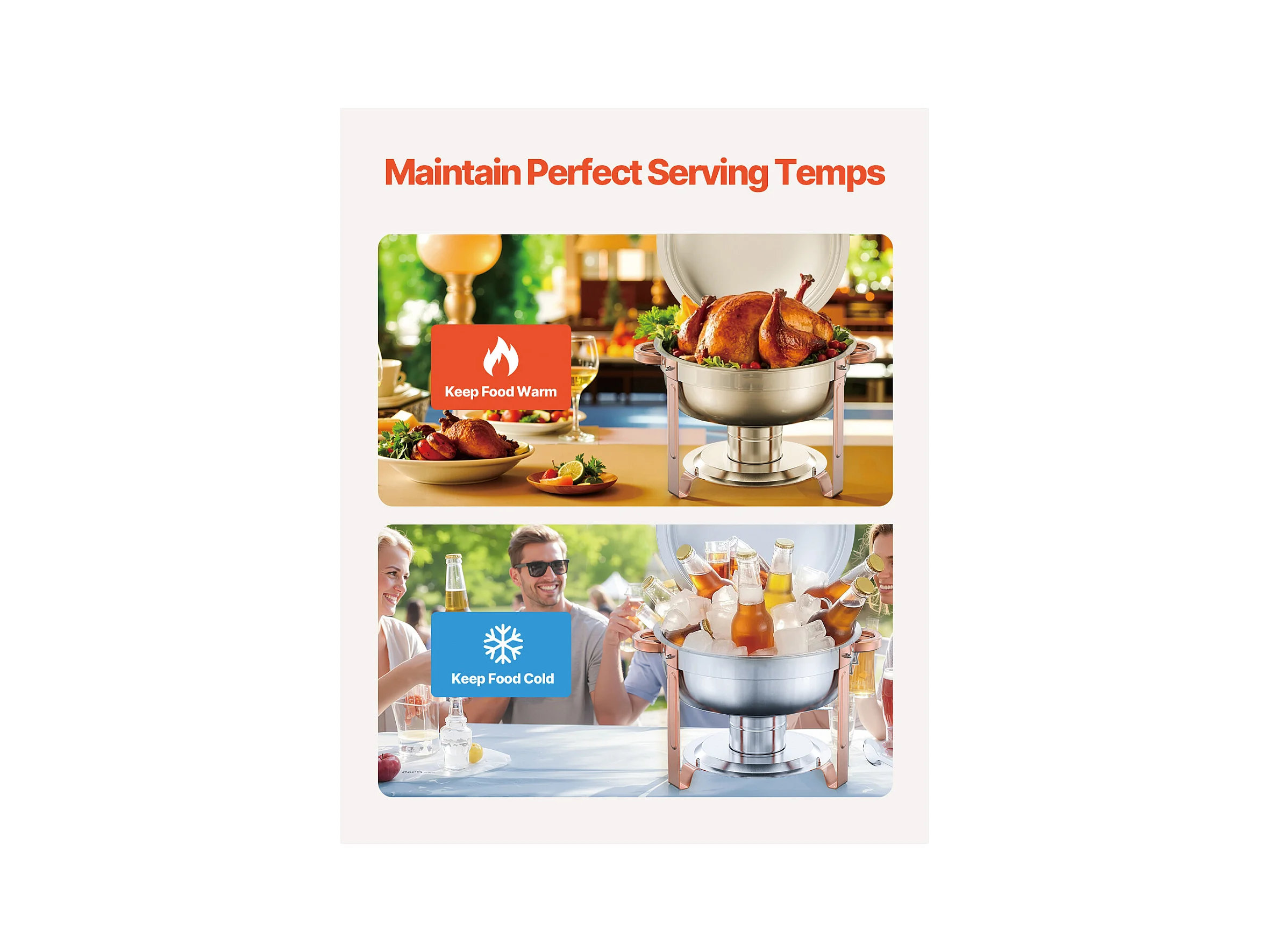 Chauffe-Plats SucceBuy Chauffe-Plat Buffet Rond 4 Pièces 4.7 L avec Couvercle, avec 4 Bacs Grande Capacité, Couvercle et Pince, Idéal pour Buffet