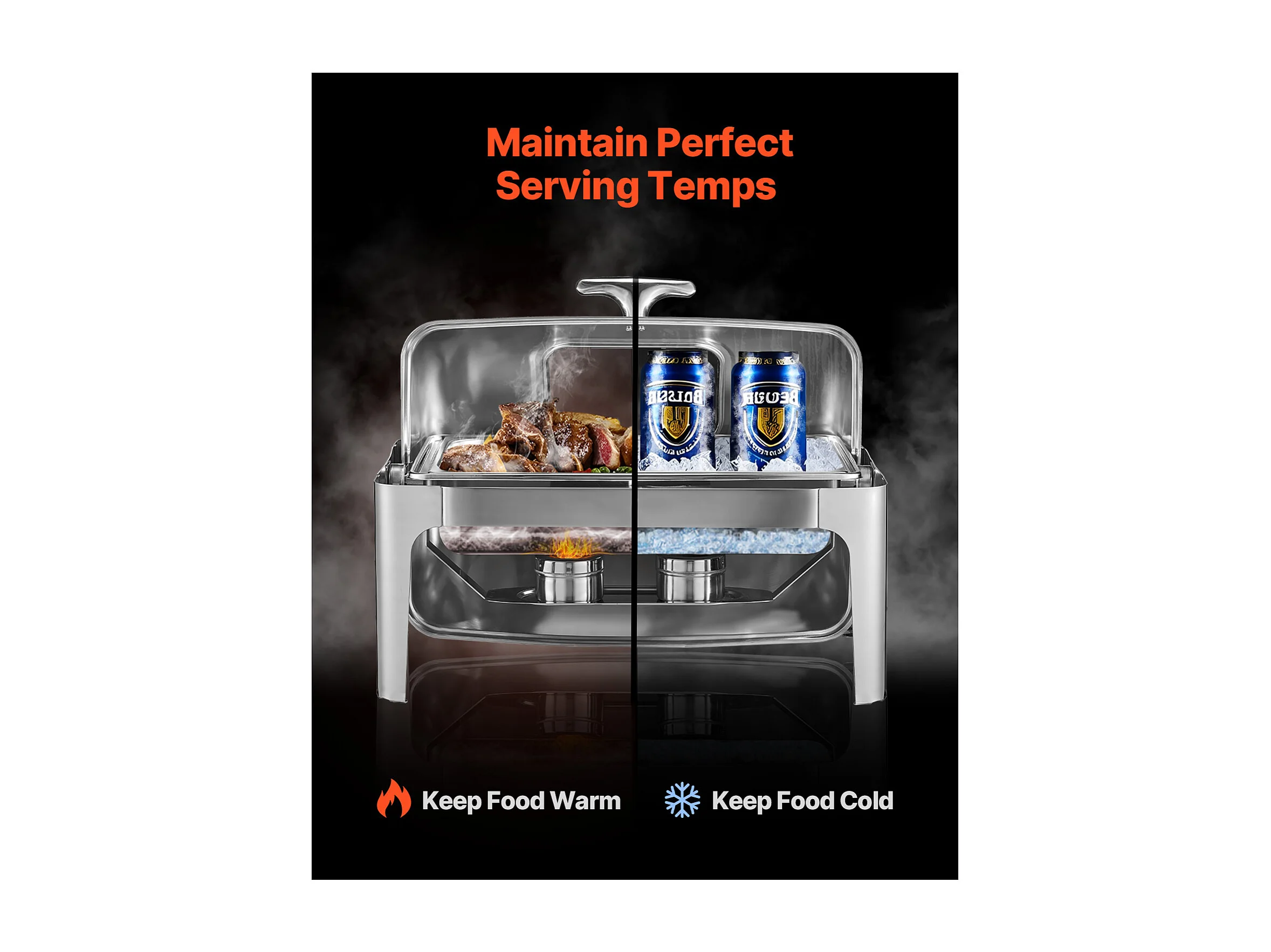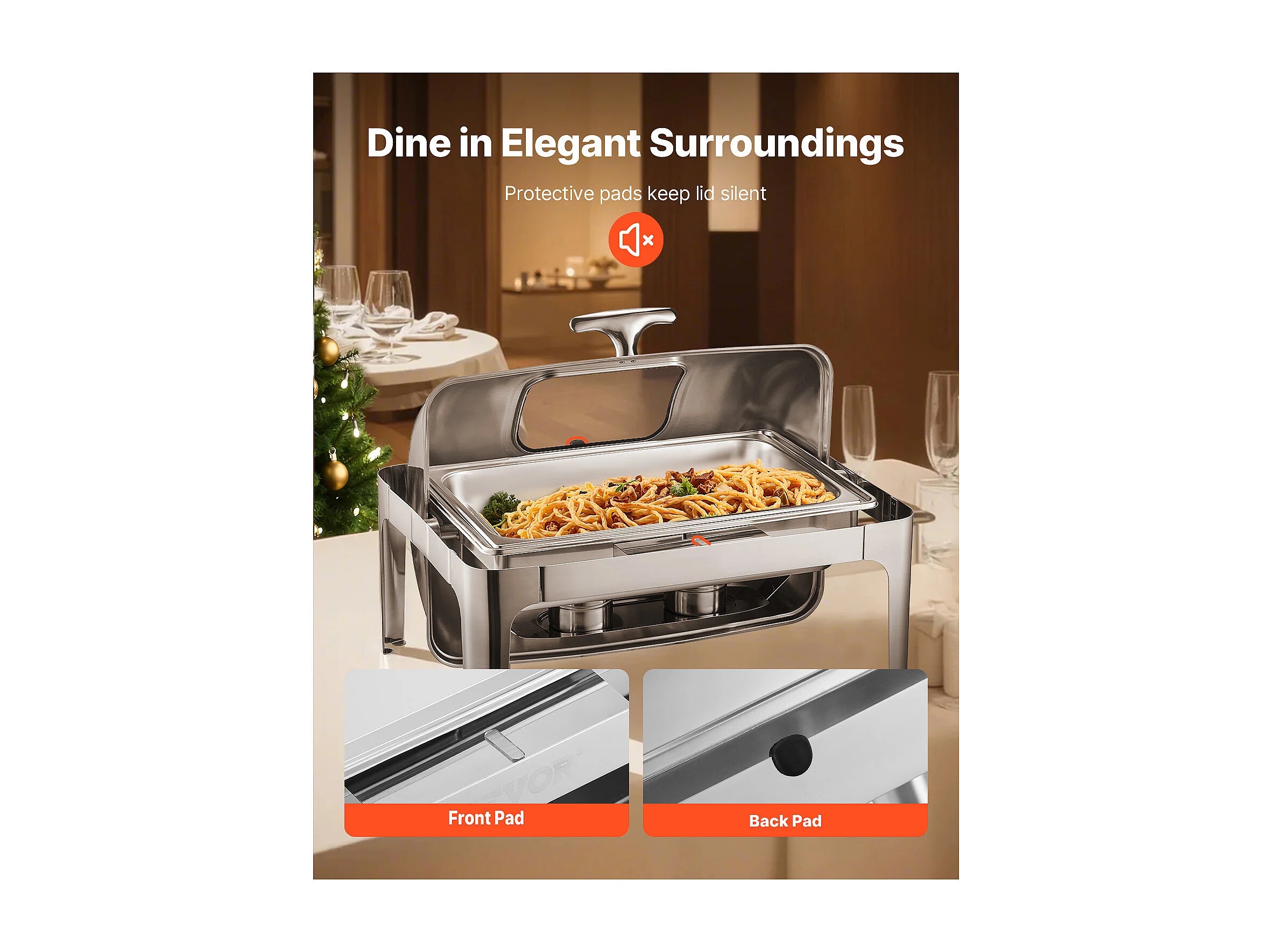 Chauffe-Plats SucceBuy Ensemble de Réchauds Rectangulaires 8.5 L avec Couvercle Enroulable, en Acier Inoxydable, avec 2 Demi-Casseroles