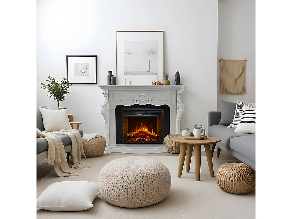 Cheminée électrique au sol PARIGI en bois blanc L123xP39xH100