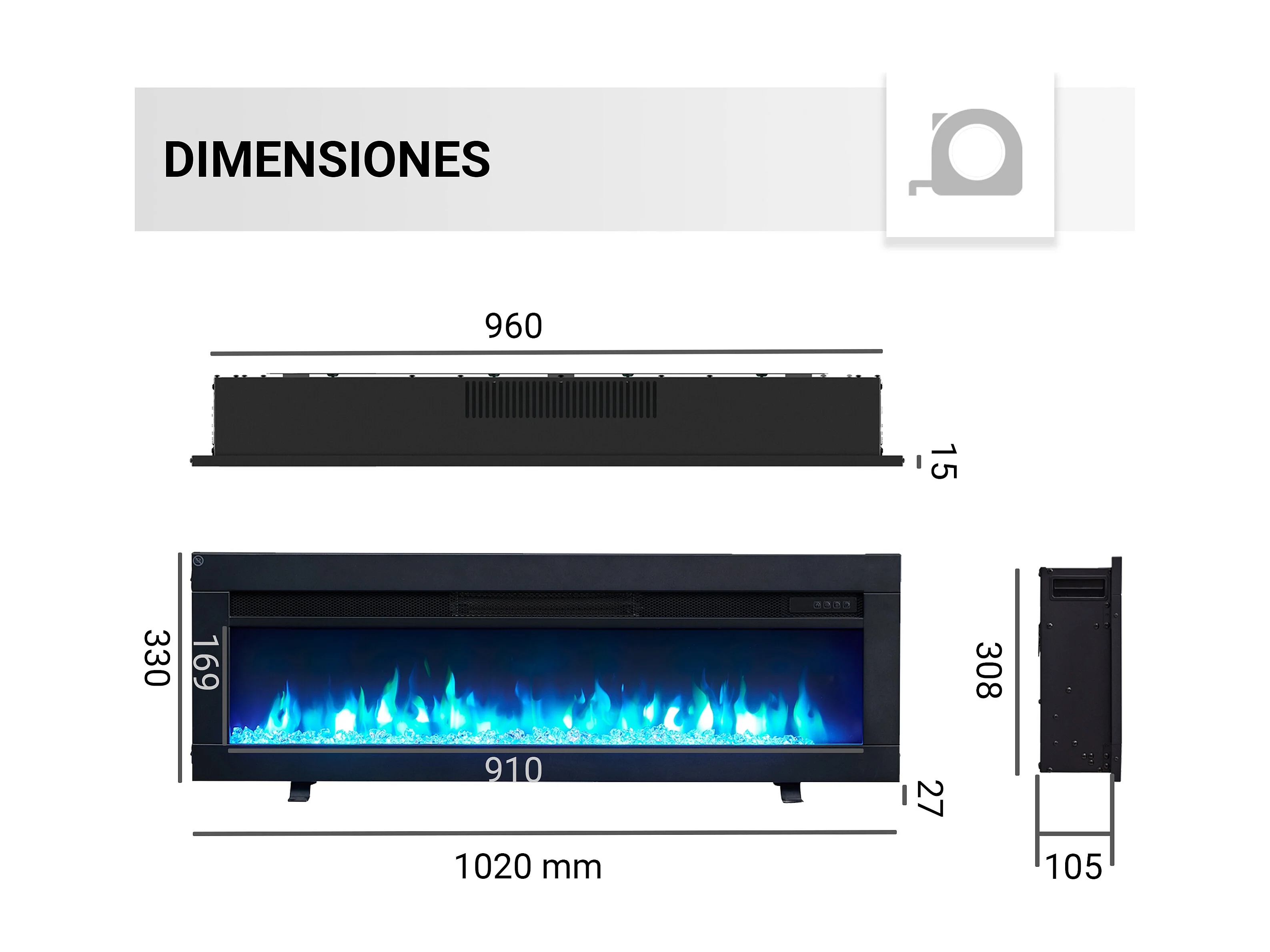 Cheminée électrique BALDERIA Agnes 40 - Cheminée sur pied, murale ou encastrable - Noir