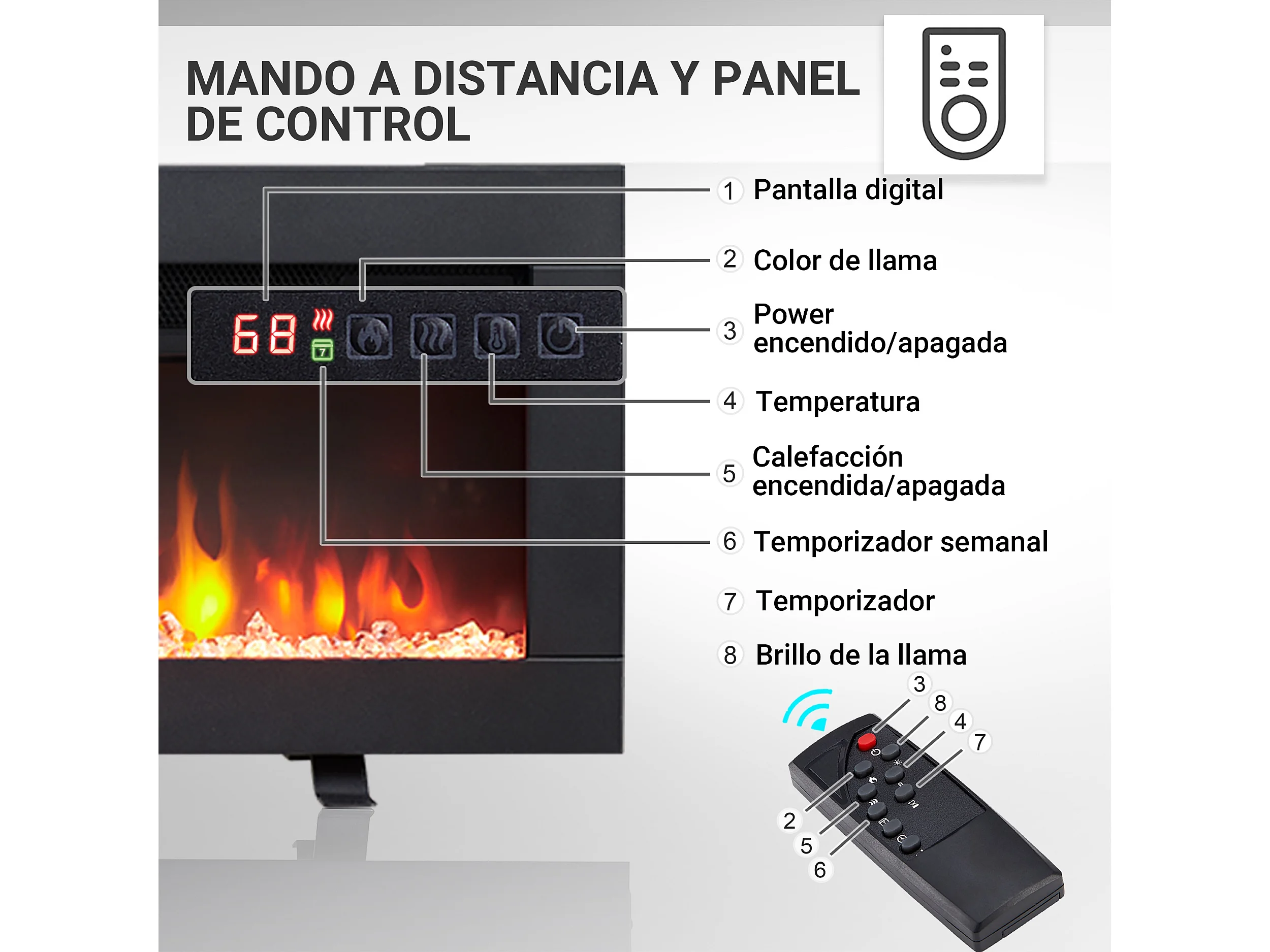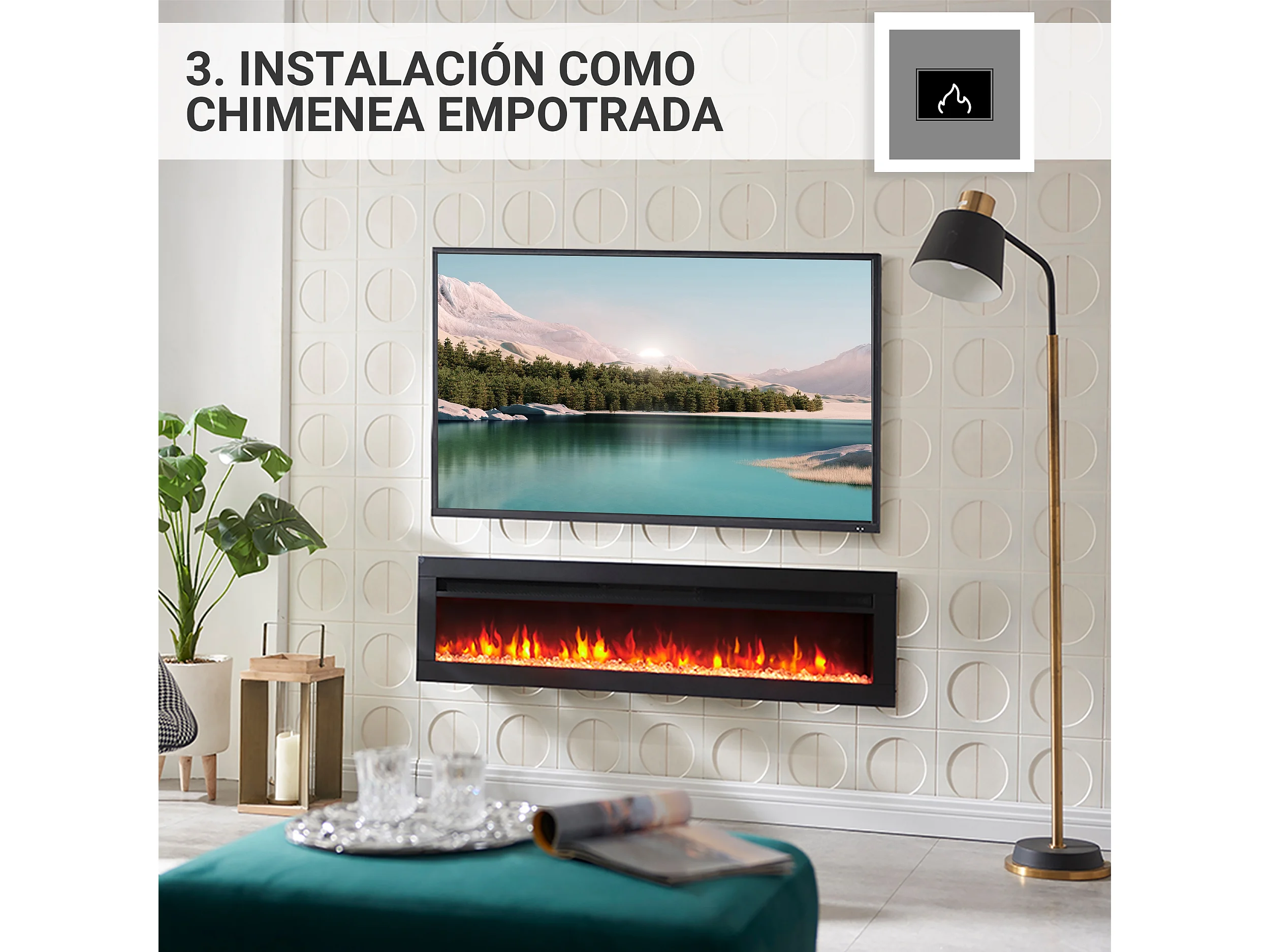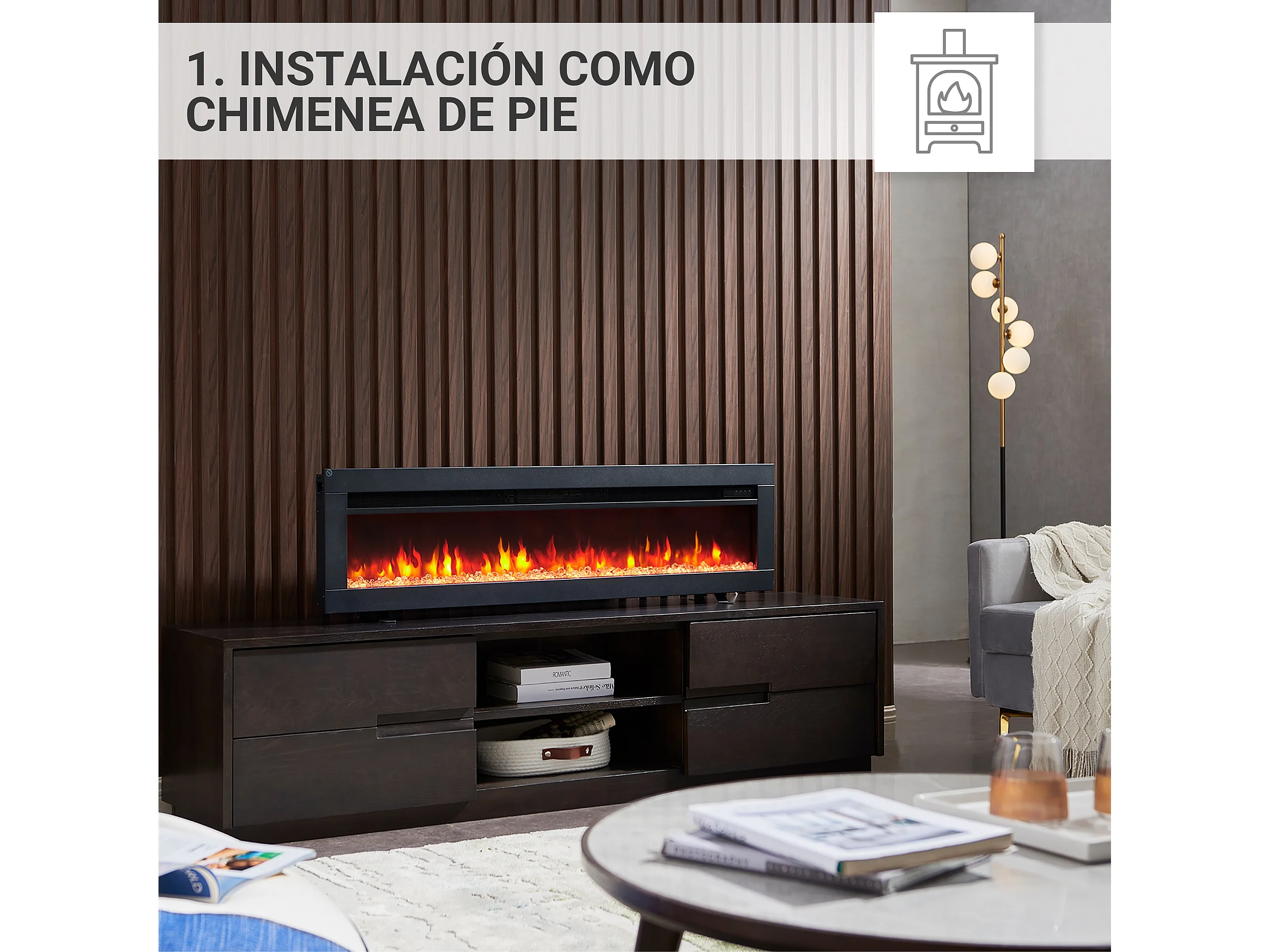 Cheminée électrique BALDERIA Agnes 50 - 3 en 1, cheminée sur pied, murale ou encastrable