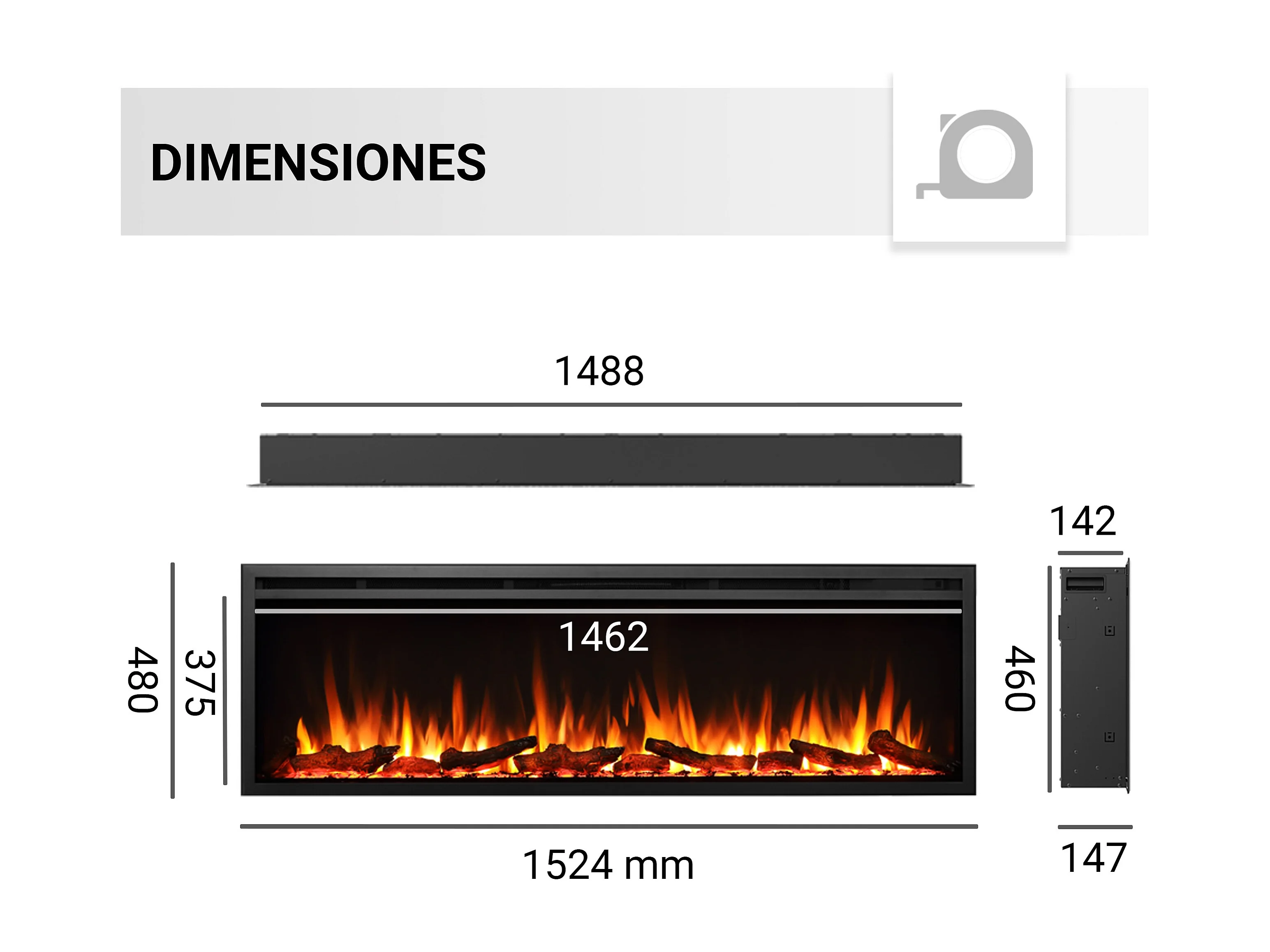Cheminée électrique BALDERIA Atalanta 60 - Cheminée encastrable, 1500 W - Noir
