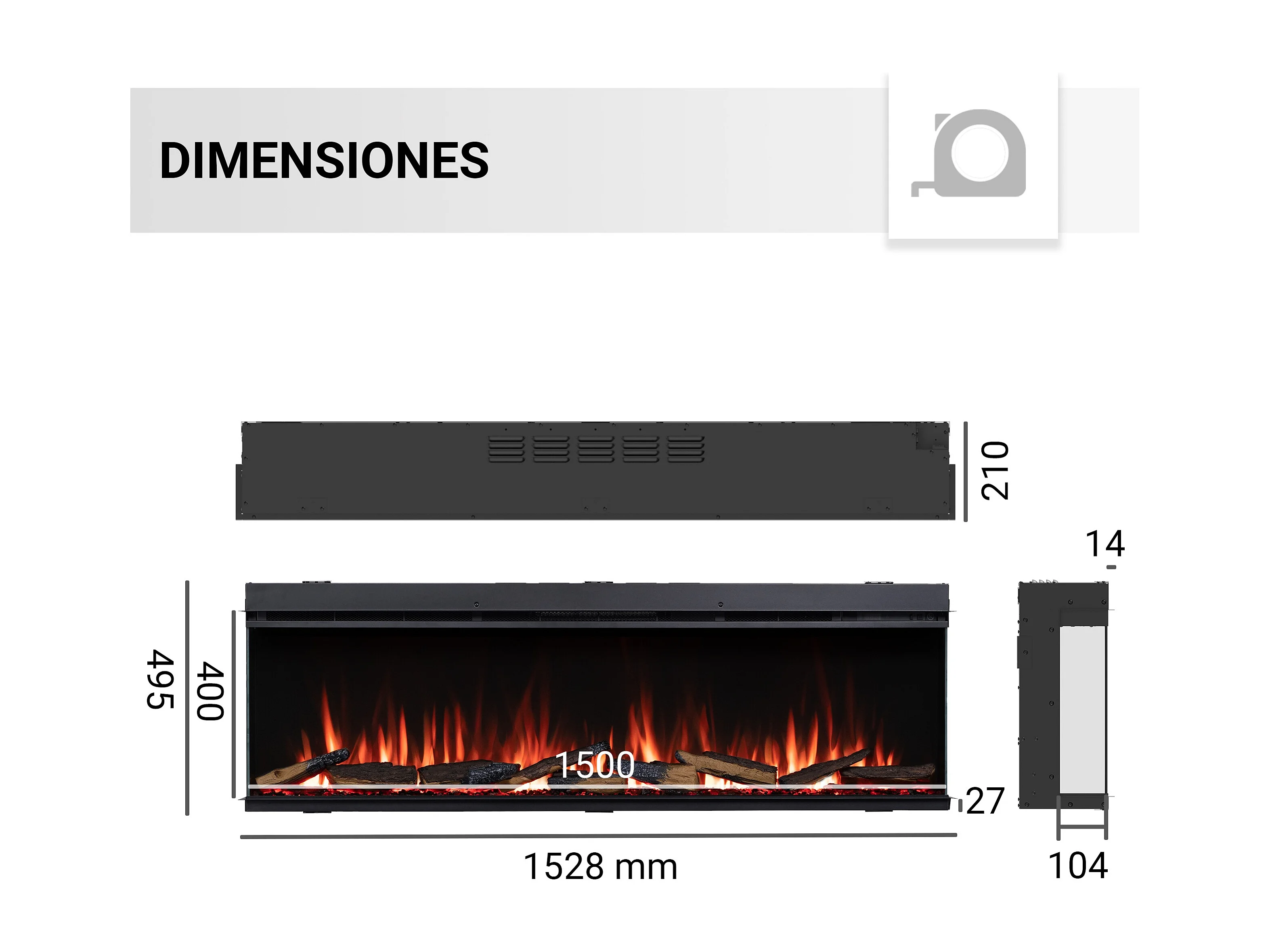 Cheminée électrique BALDERIA Athena smart 60 - Cheminée encastrable - Noir