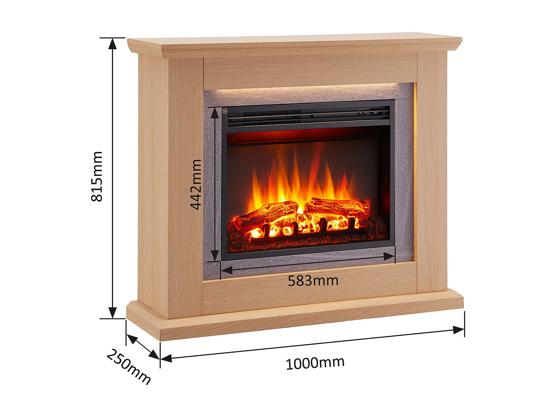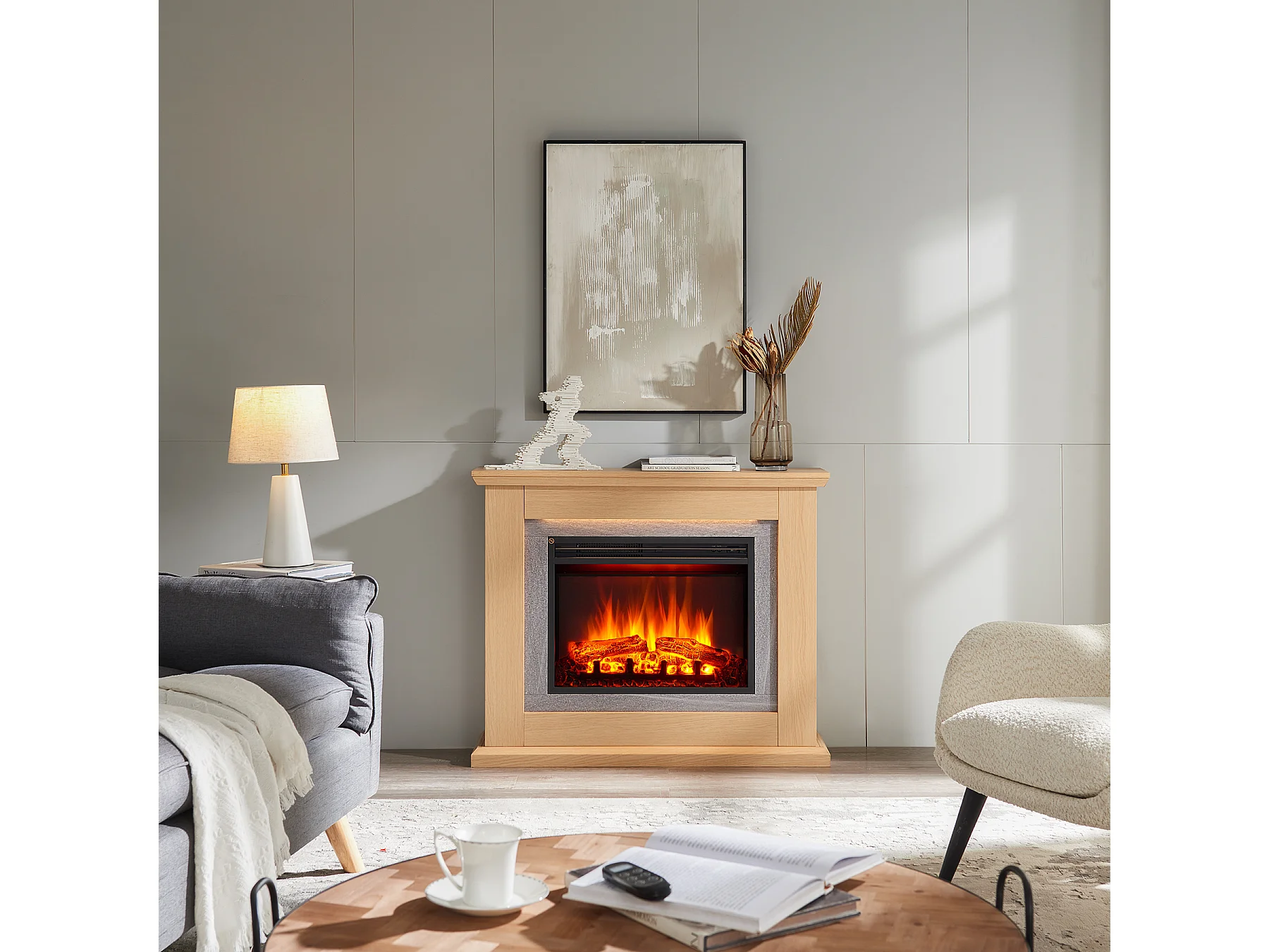 Cheminée électrique BALDERIA Charon - Cheminée sur pied, 2000 W - Chêne clair