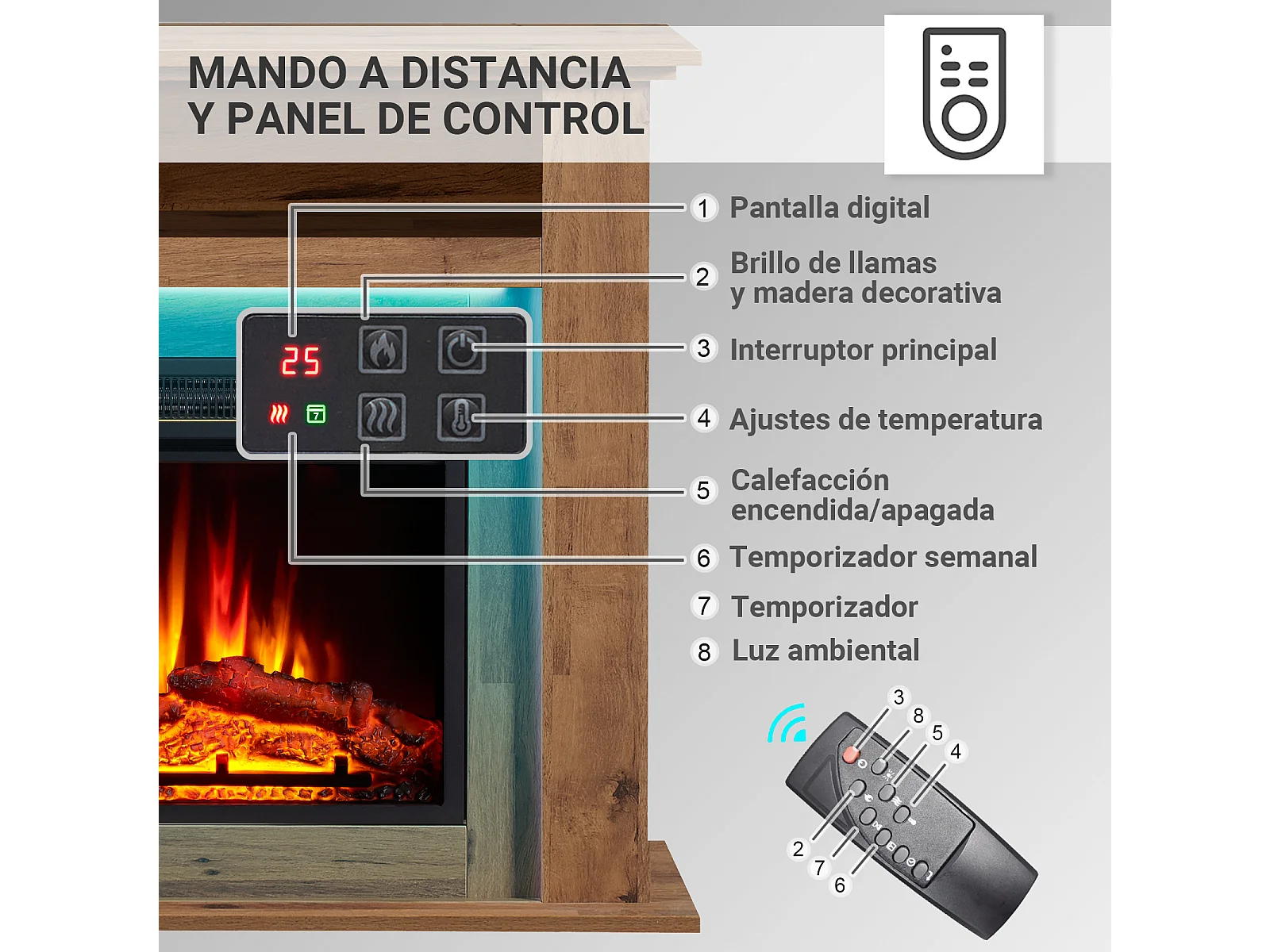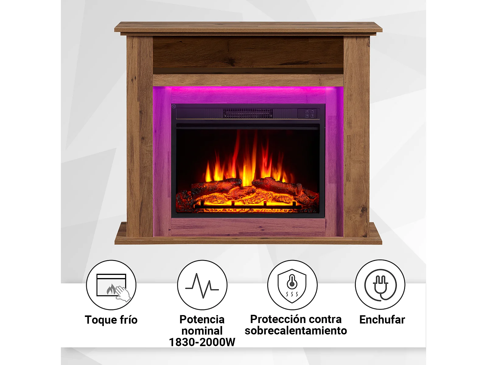 Cheminée électrique BALDERIA Liora - Cheminée sur pied, tablette, chauffage - Chêne foncé