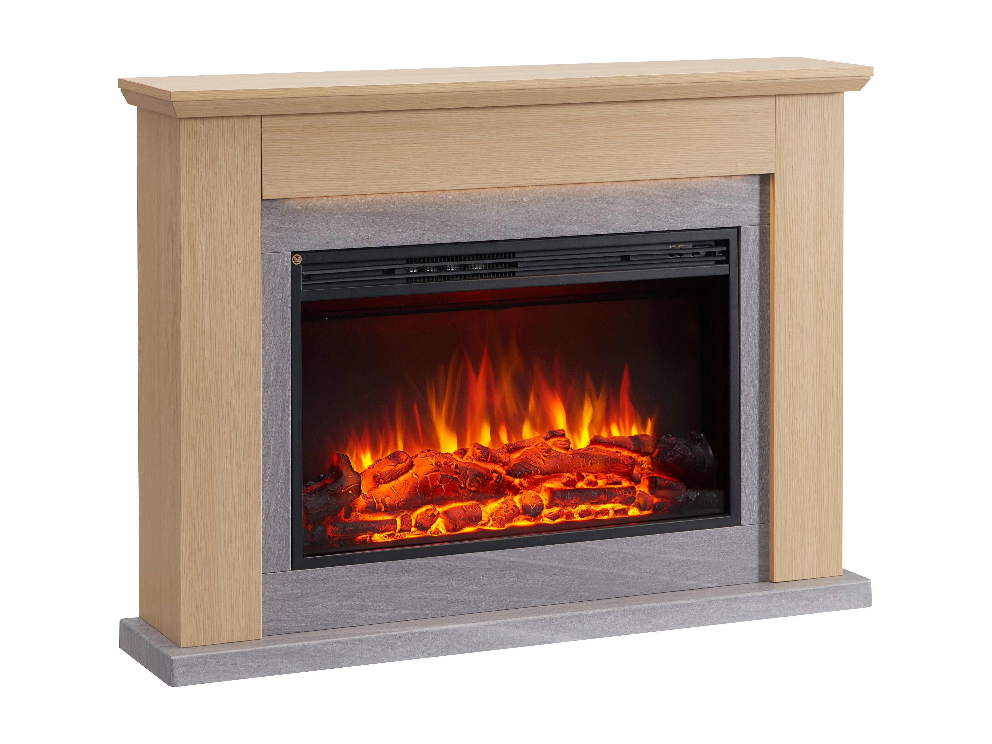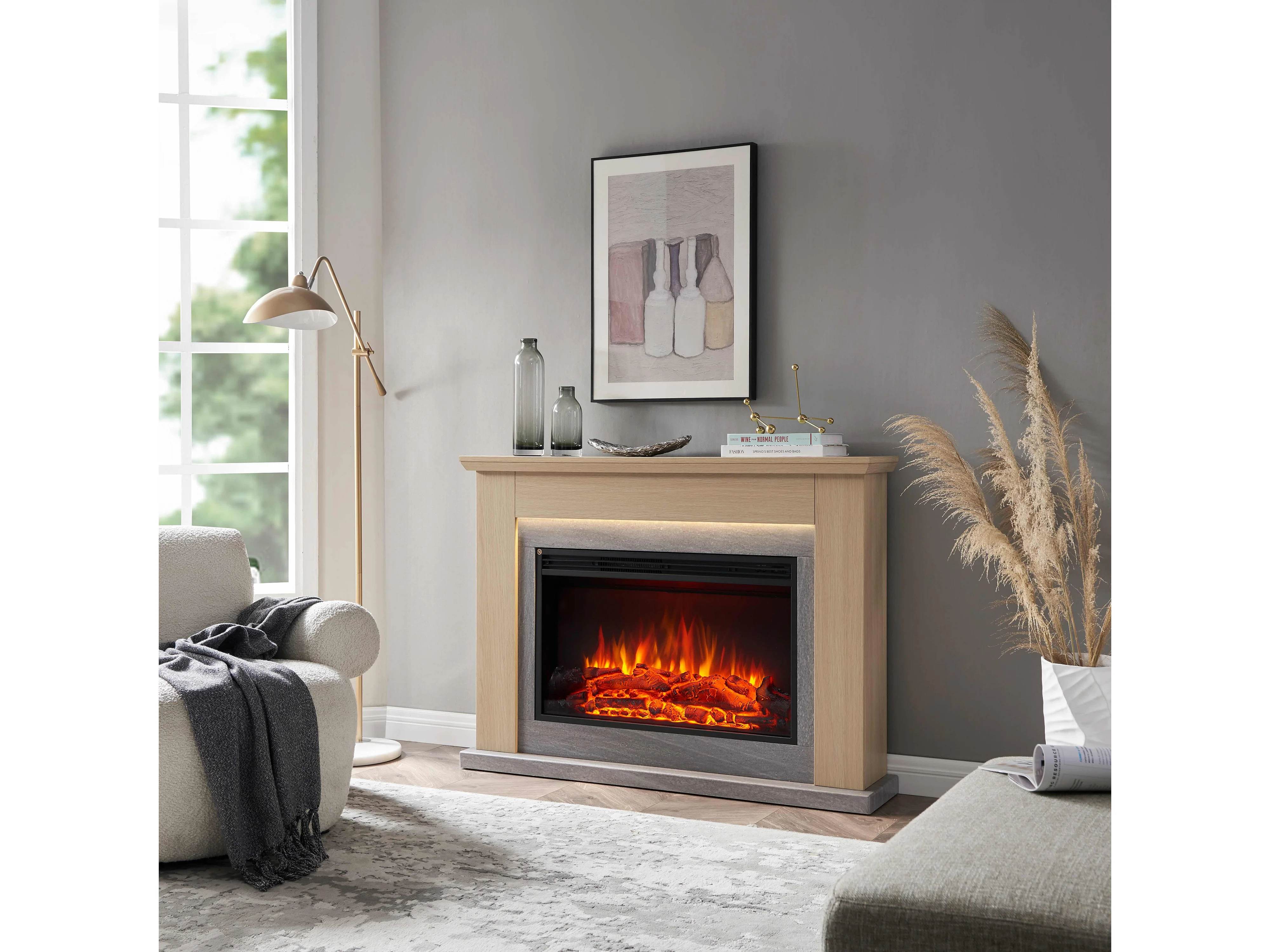Cheminée électrique BALDERIA Typhon - Cheminée sur pied, chauffage 2000 W - Marron clair