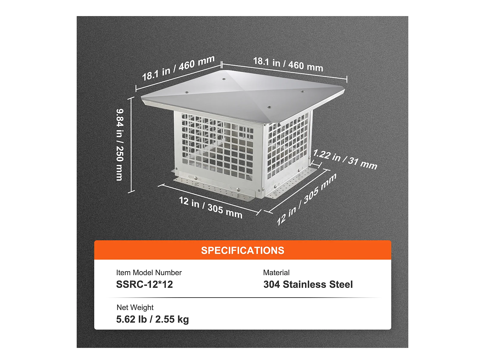 Cheminée SucceBuy Chapeau de Cheminée 30.5 X 30.5 CM, Couvercle de Conduit en Acier Inoxydable 304, Maille