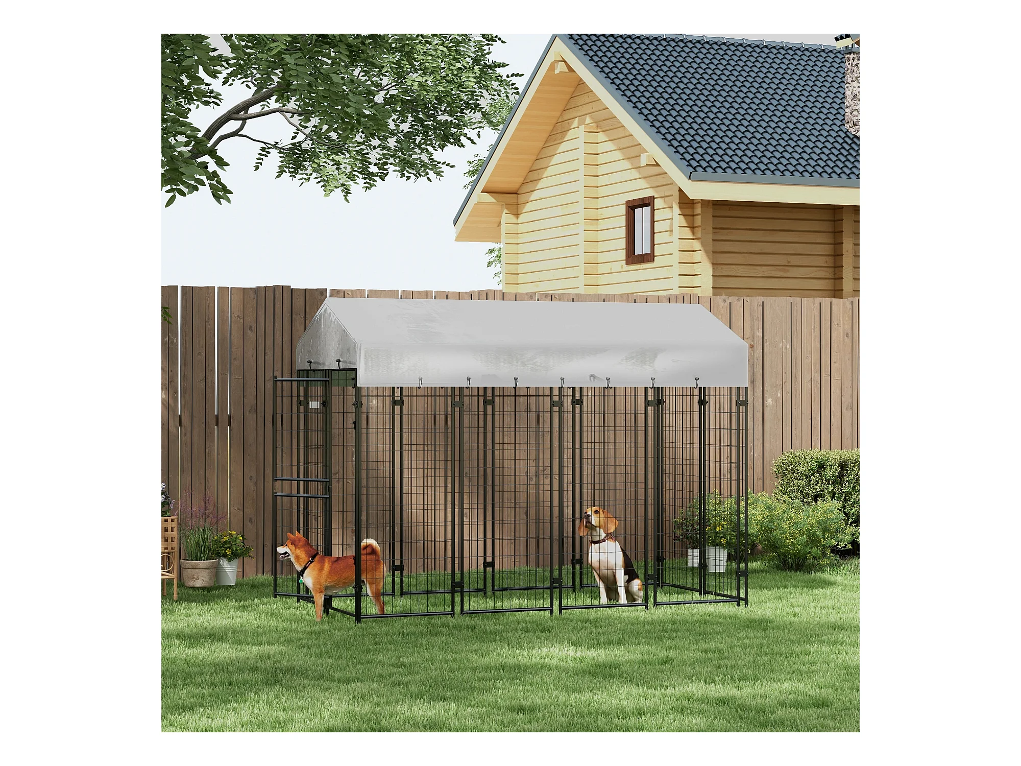 Chenil extérieur chien - cage chien - enclos chien - toile toit imperméable anti-UV, 2 portes verrouillables - acier noir PE gris