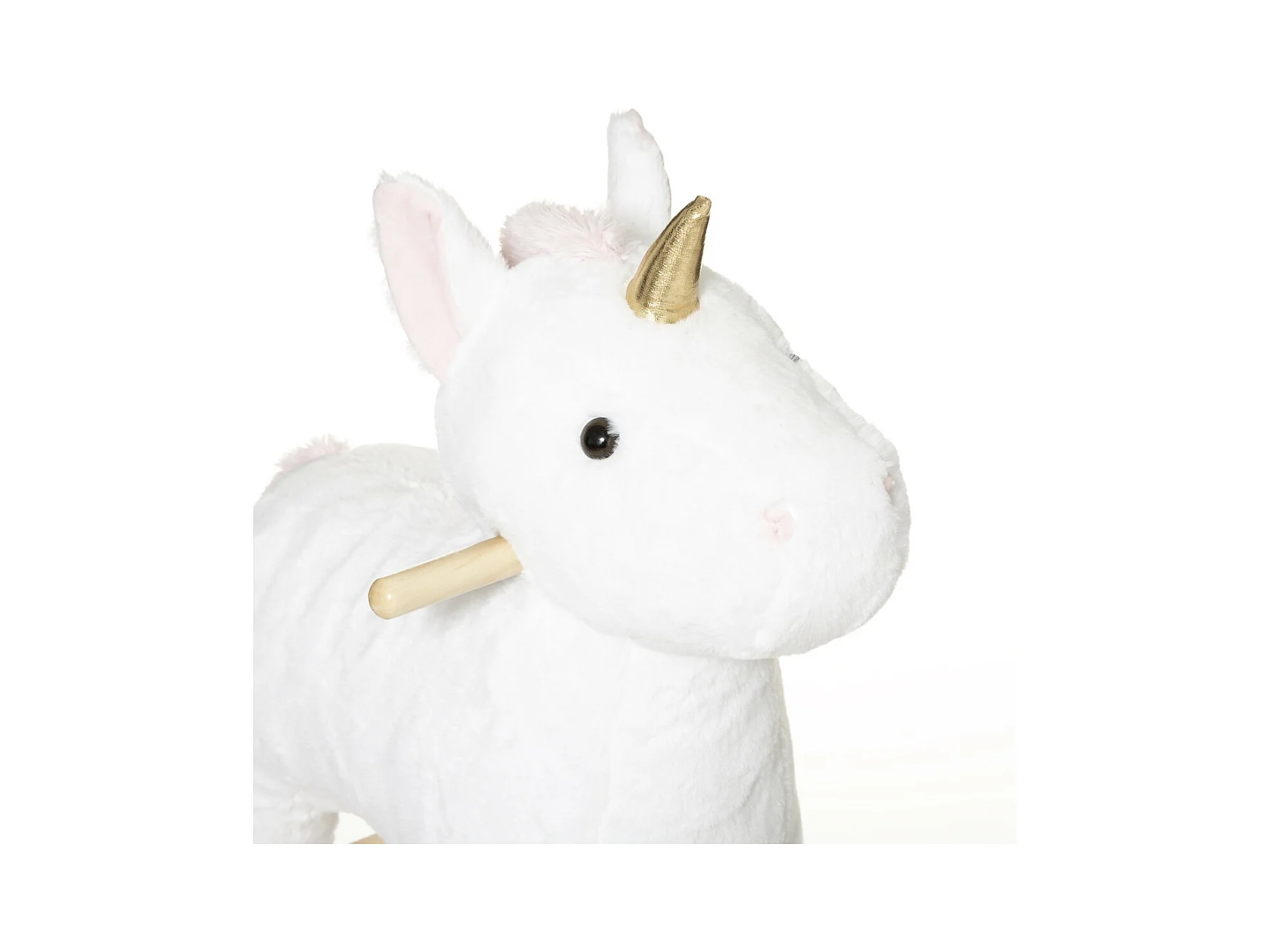 Cheval à bascule licorne porteur 2 en 1 - effet sonore - poignée structure bois de peuplier peluche douce blanche