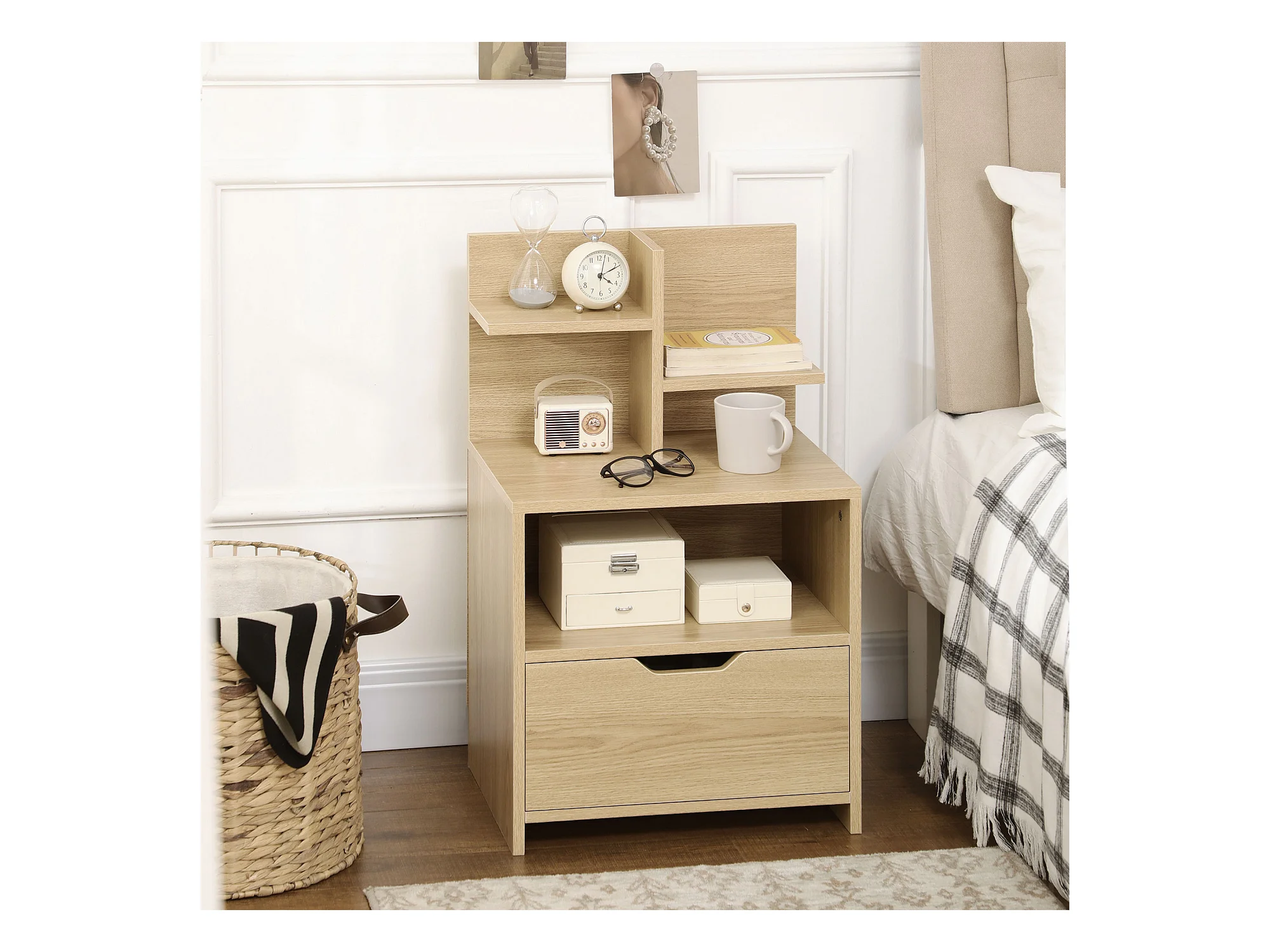 Chevet table de nuit multi-rangement tiroir niche plateau 2 étagères aspect bois de chêne clair