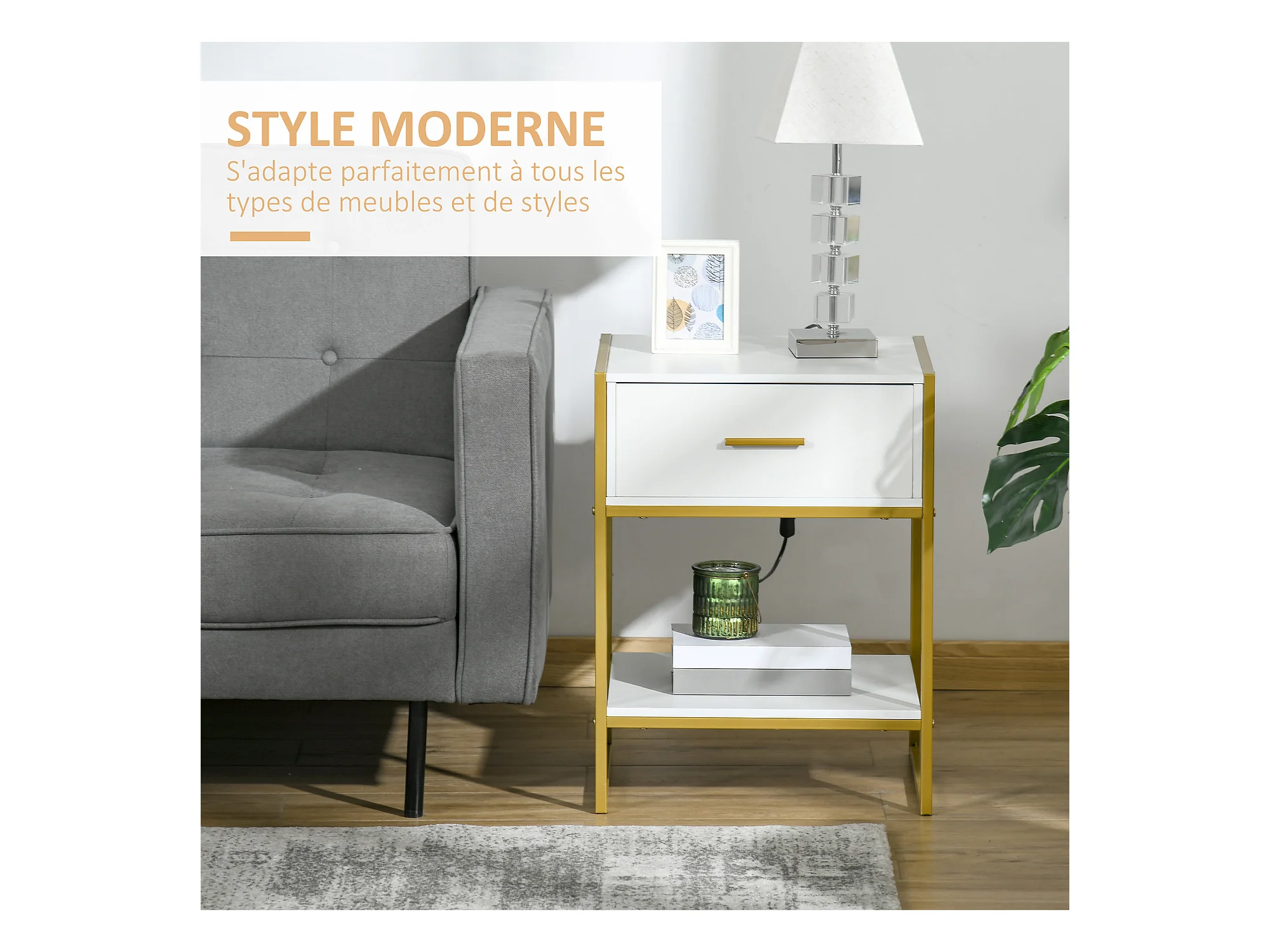 Table De Chevet Bout De Canapé Table D'appoint 1 Tiroir Et 2 Étagères De Rangement - Blanc, Fbt46-w