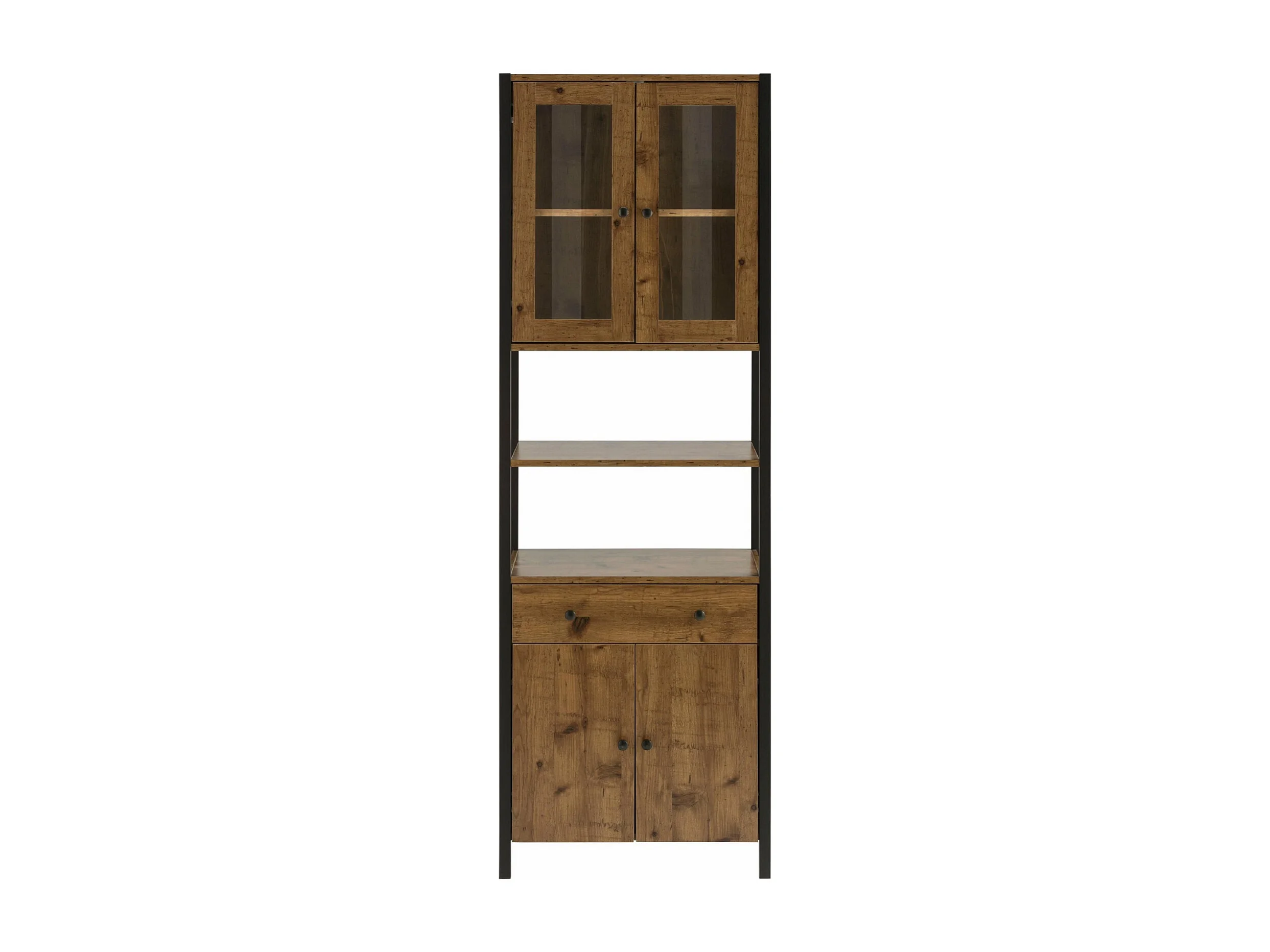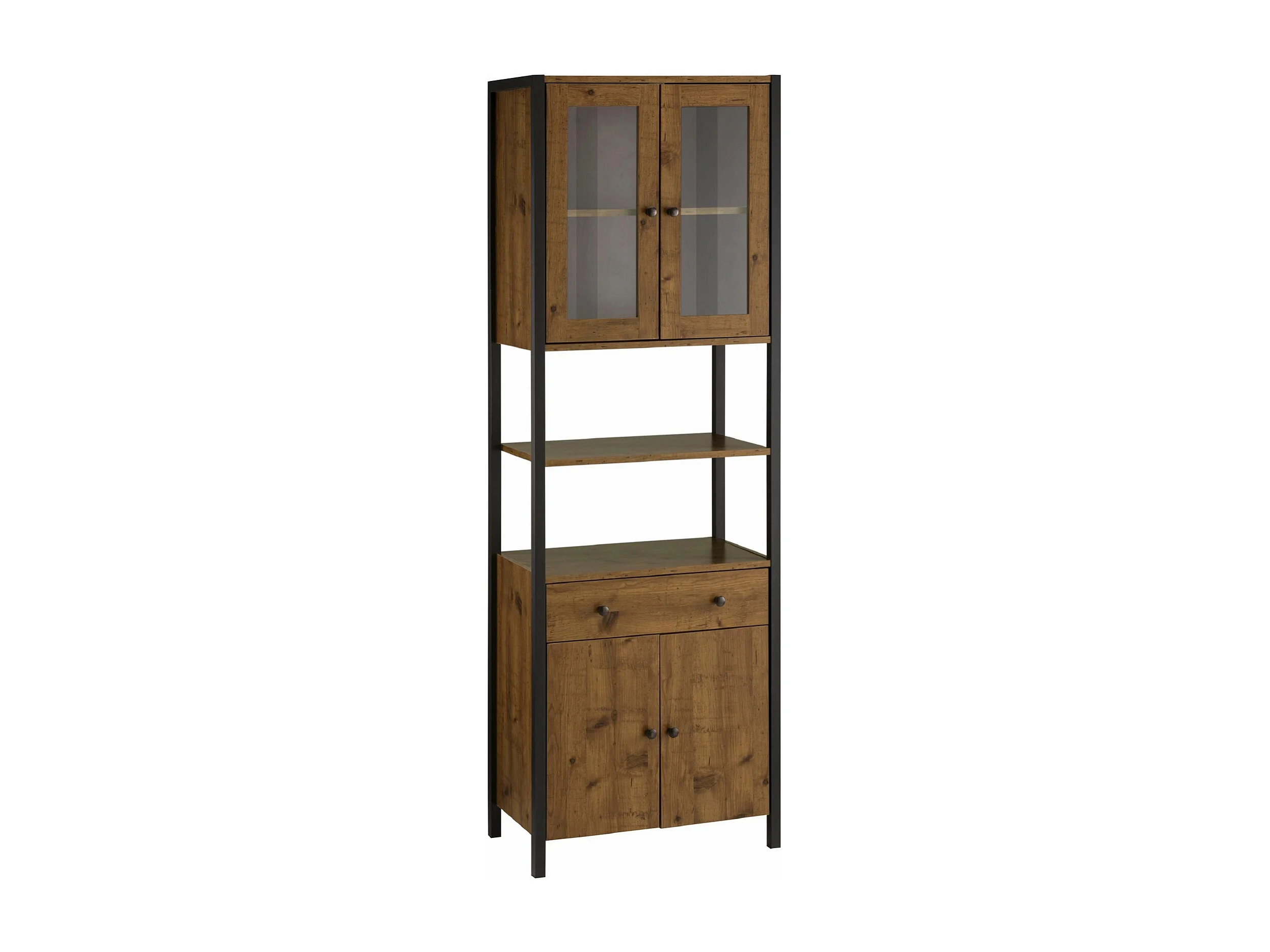 Chris | Armoire haute avec 2 portes vitrées + 2 portes en aggloméré chêne / noir