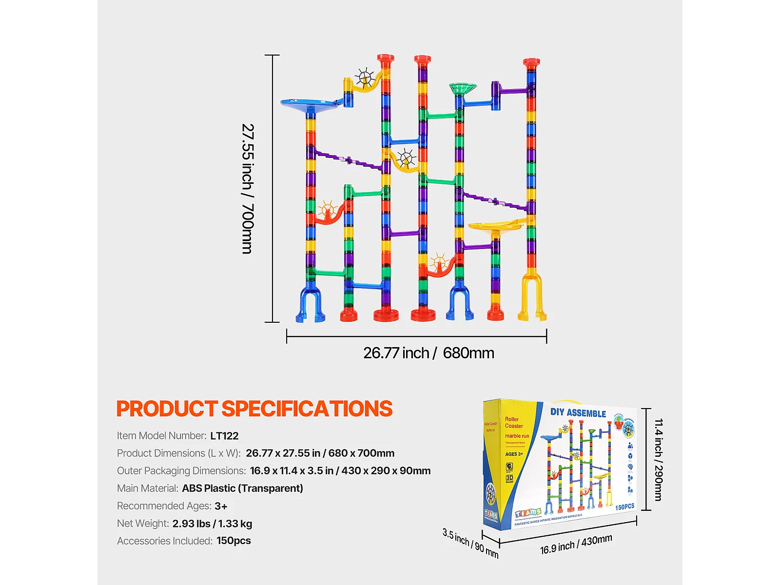 Circuit à Billes SucceBuy, 230 Pièces, Ascenseur Motorisé, Jeu de Labyrinthe Éducatif, Design Coloré