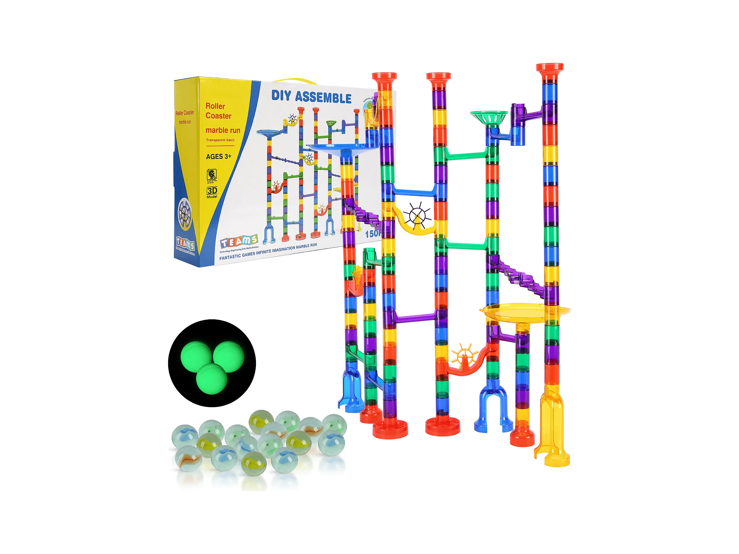 Circuit à Billes SucceBuy, 150 Pièces, 50 Billes, Jouet STEM, Blocs Éducatifs pour Enfants