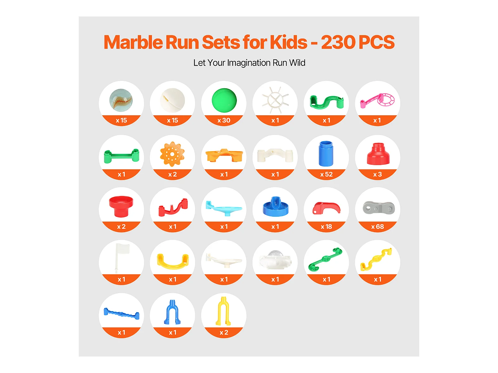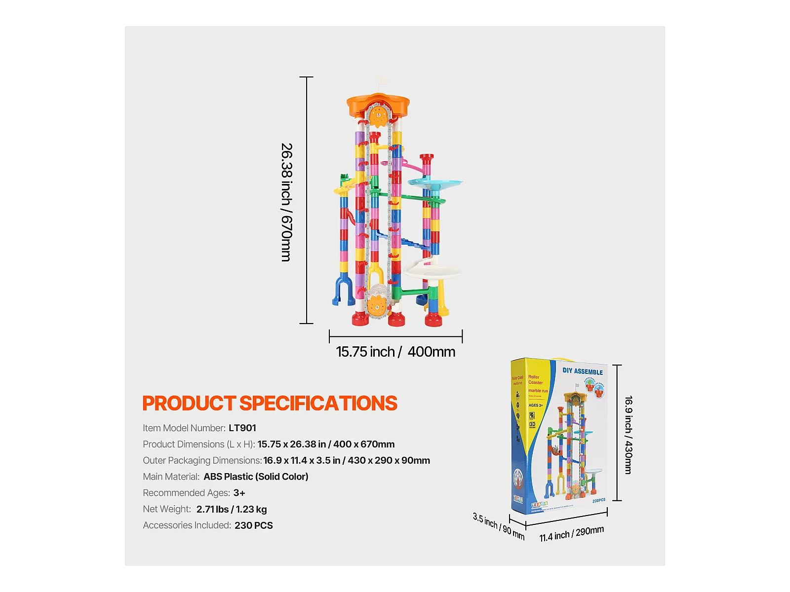 Circuit à Billes SucceBuy, 230 Pièces, Ascenseur Motorisé, Jeu de Labyrinthe Éducatif, Design Coloré