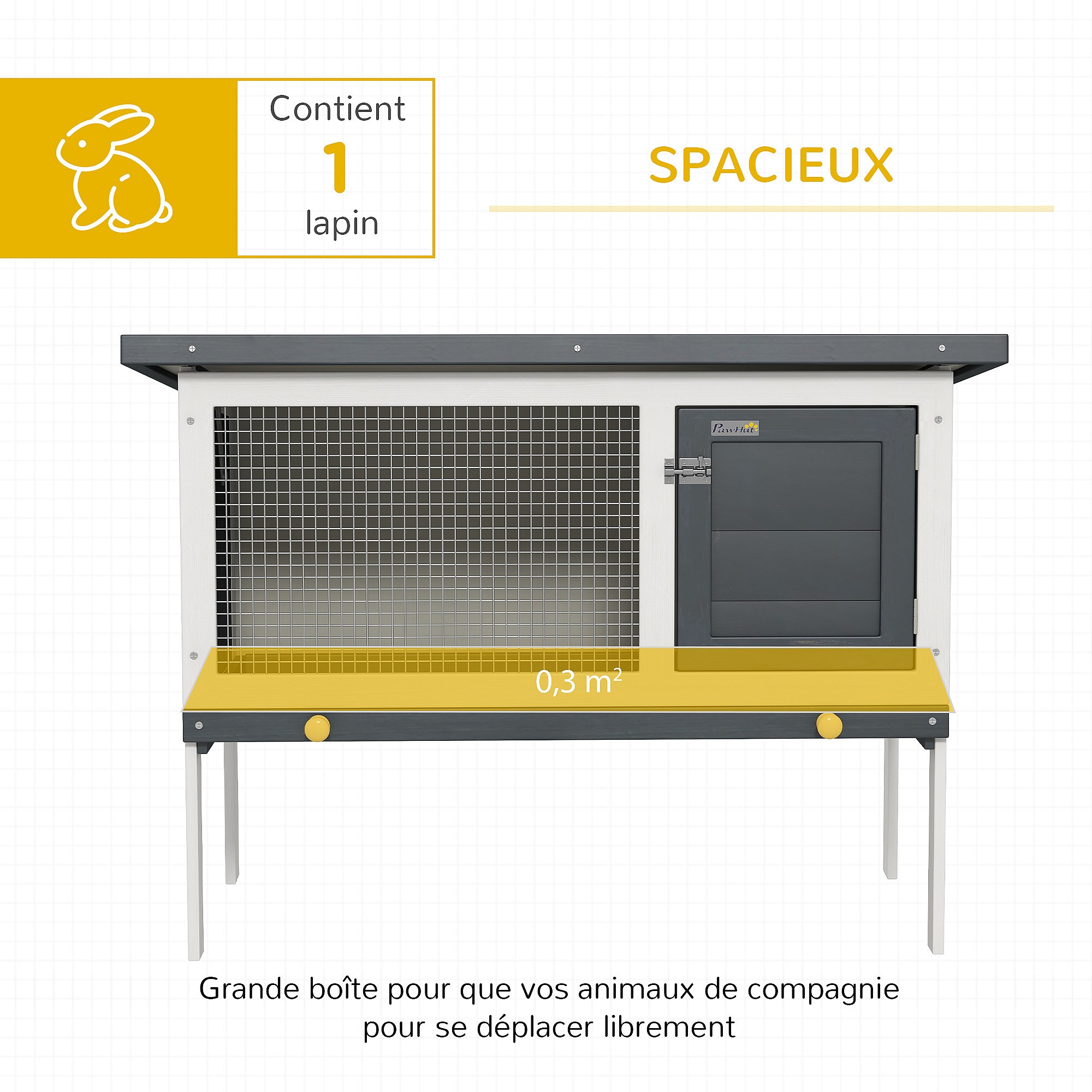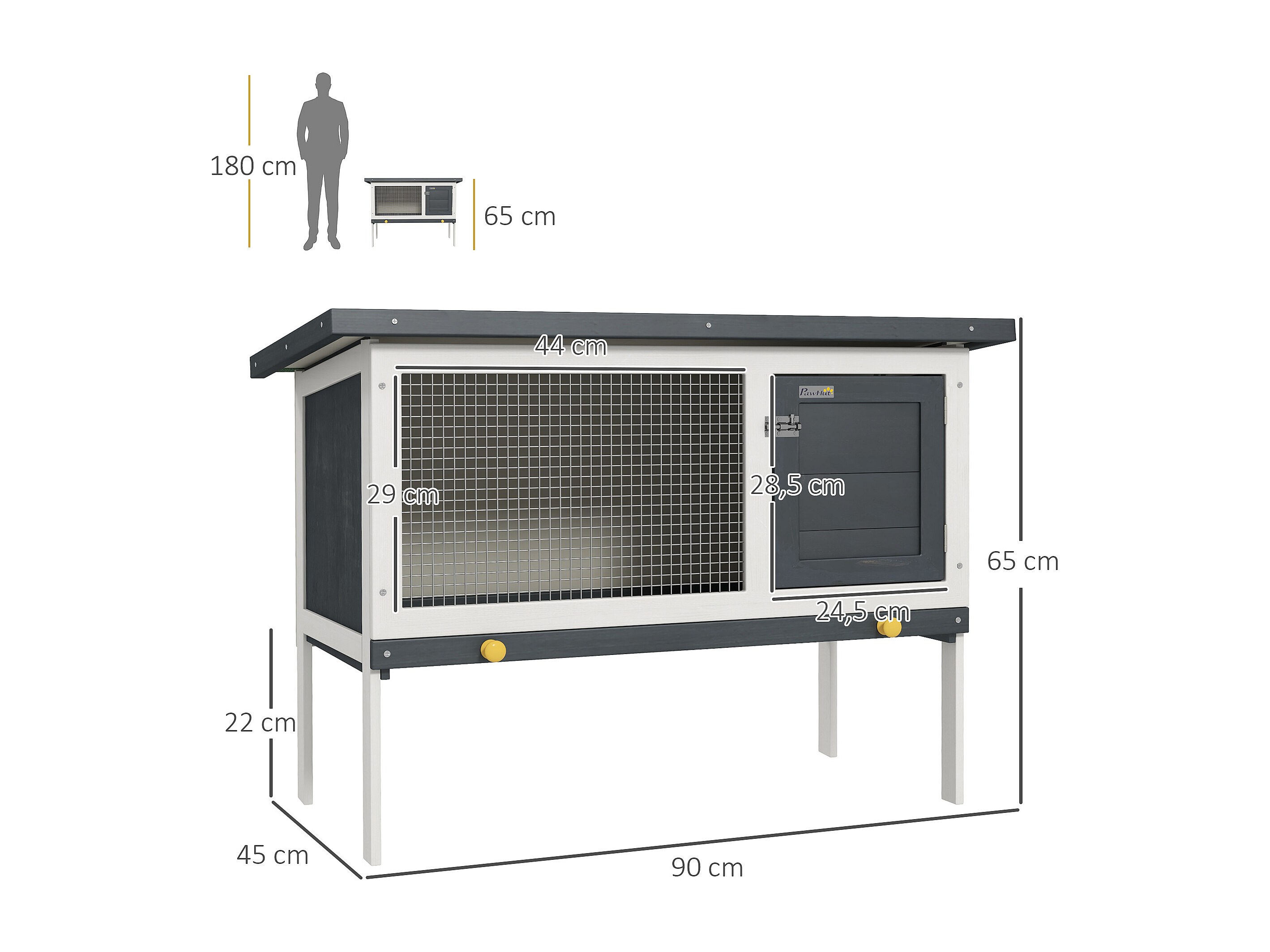 Clapier sur pied cage à lapin avec niche intérieure toit ouvrant porte verrouillable dim. 90L x 45l x 65H cm noir blanc vert