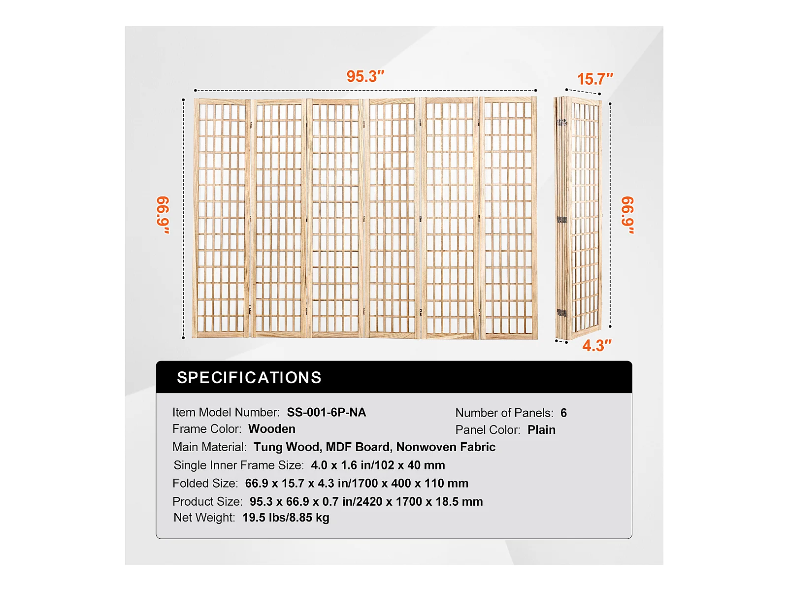 Cloison de Séparation de Pièce Japonaise SucceBuy à 6 Panneaux pour la Séparation de Pièce