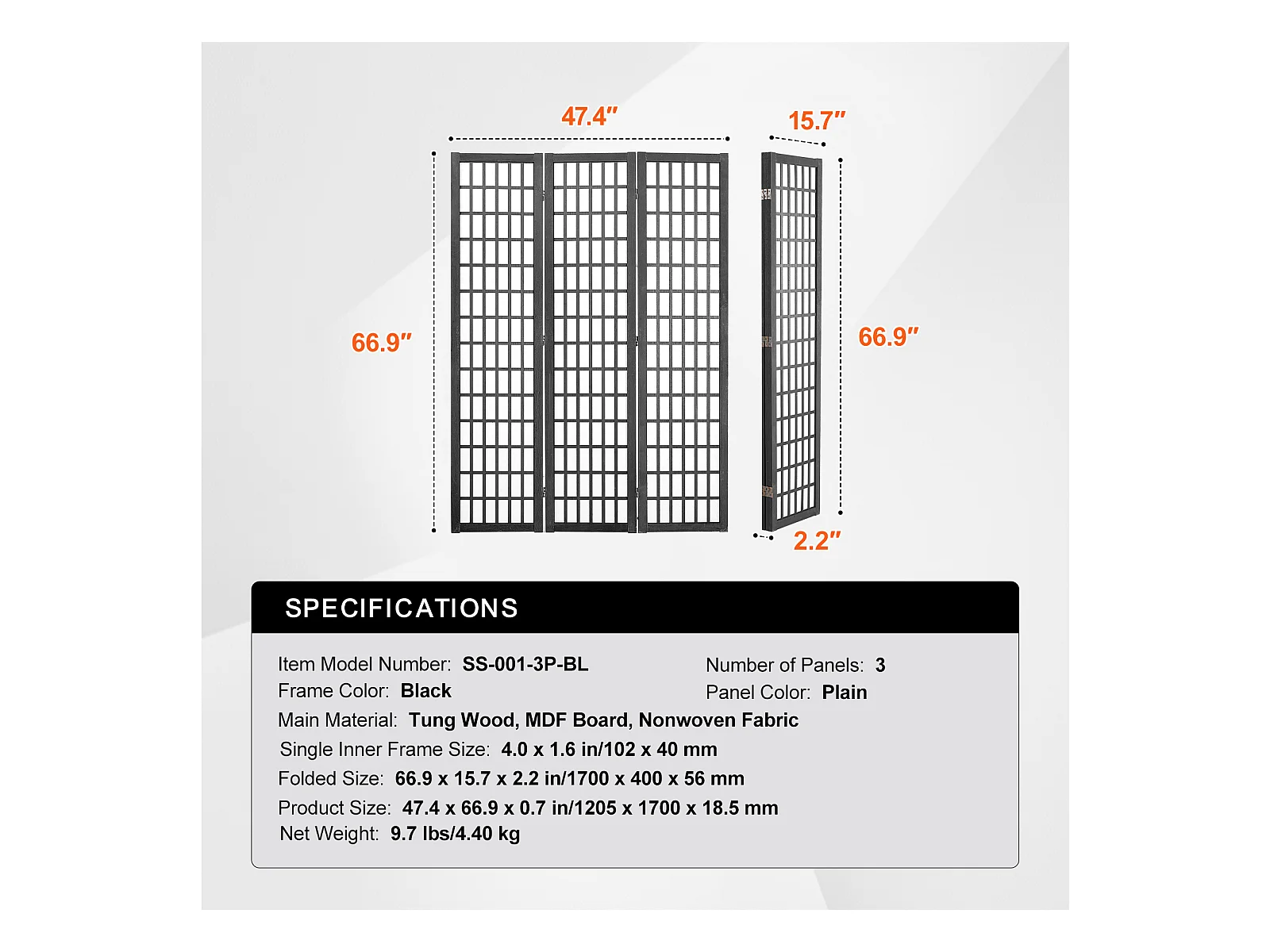 Cloison de Séparation SucceBuy, Cloison de Séparation Japonaise à 3 Panneaux, Portable, en bois pivoter à 360°, 120,5 x 170 x 1,9 cm, pour Séparation de Pièce
