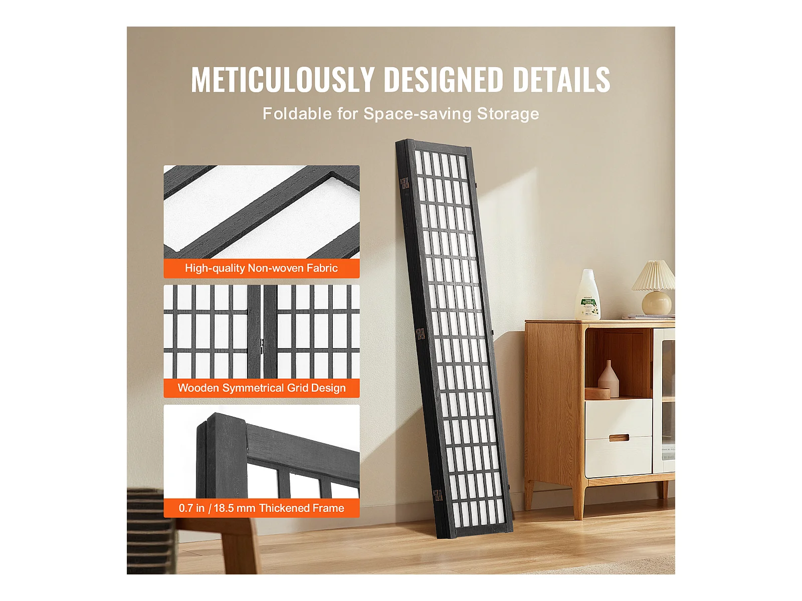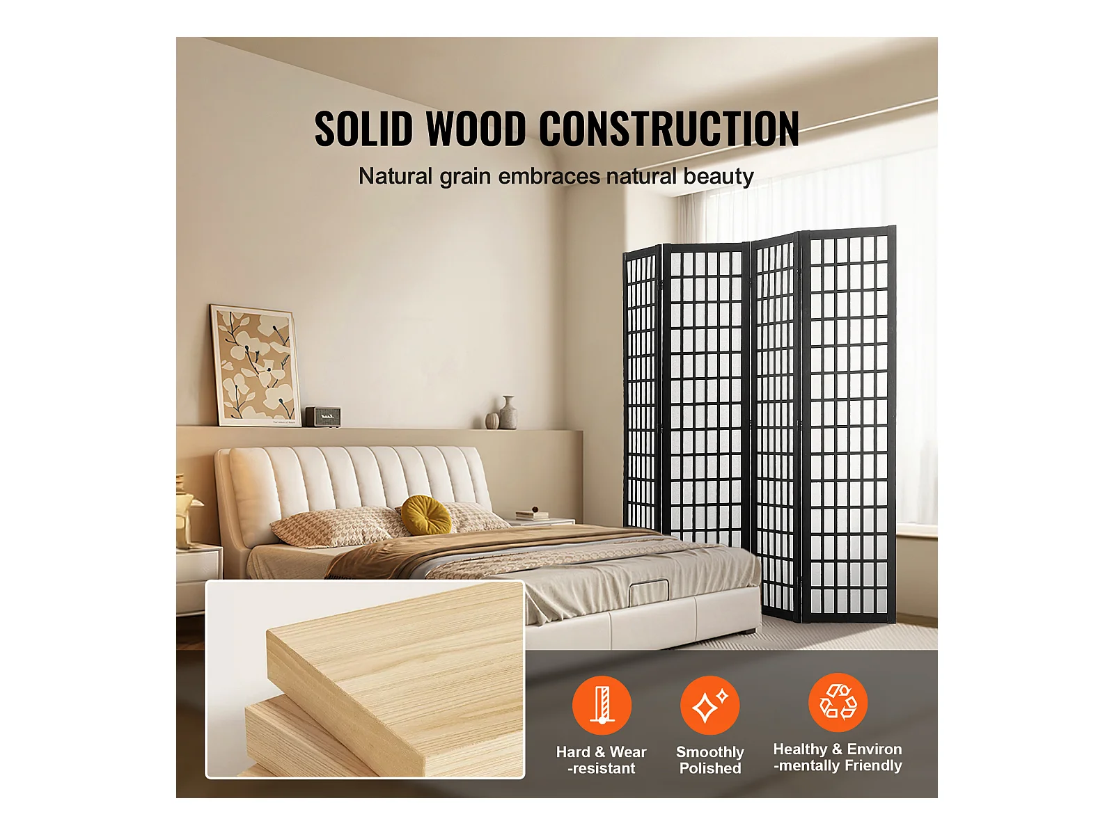 Cloison de Séparation SucceBuy, Cloison de Séparation Japonaise à 4 Panneaux, Cloison Japonaise Portable, en bois pivoter à 360°, pour Séparation de Pièce