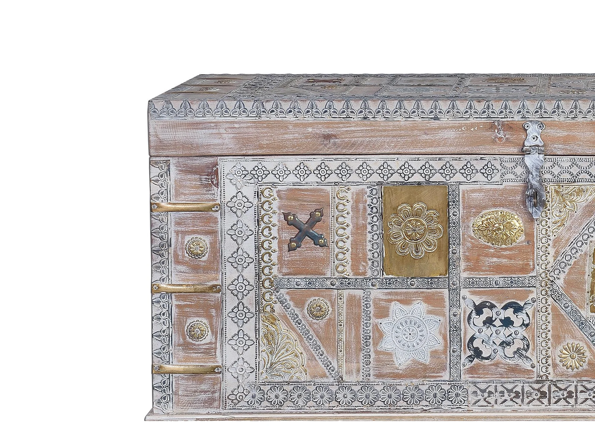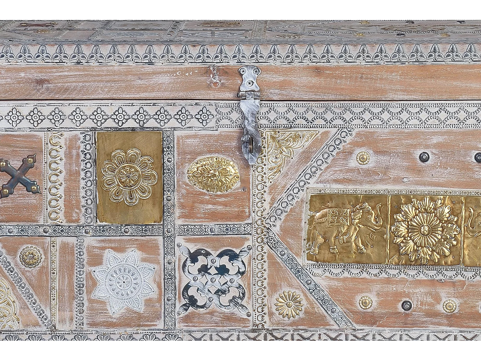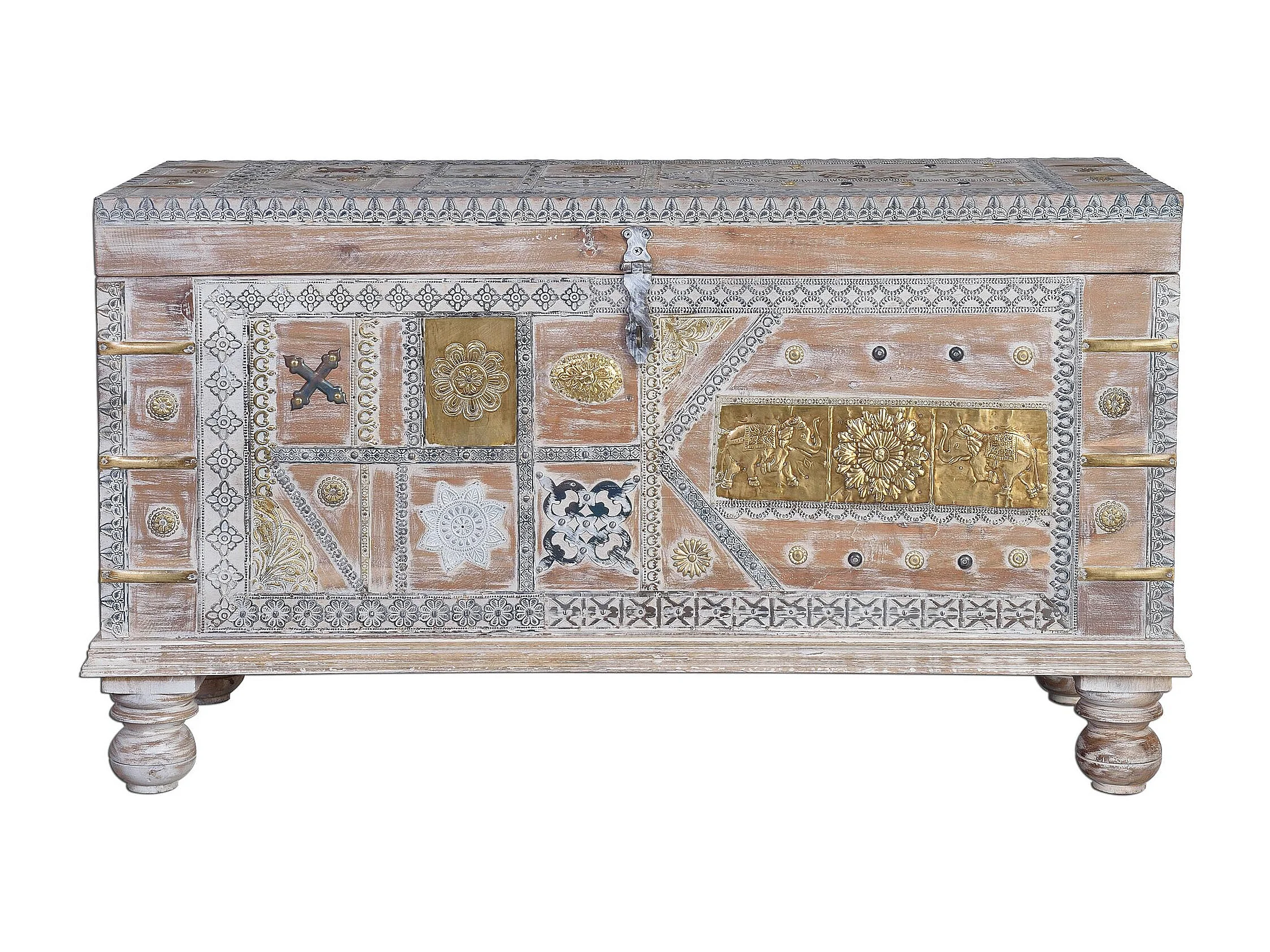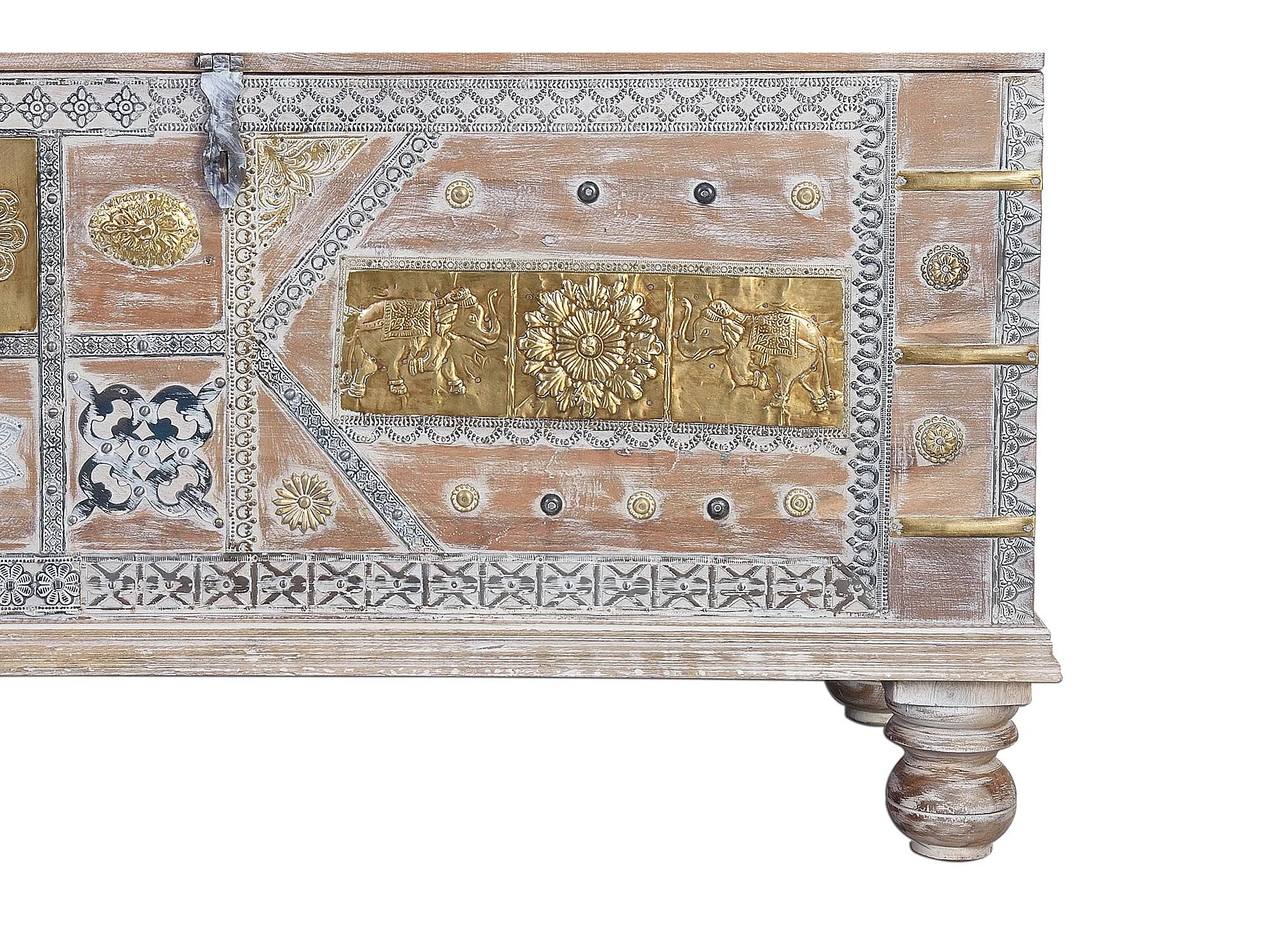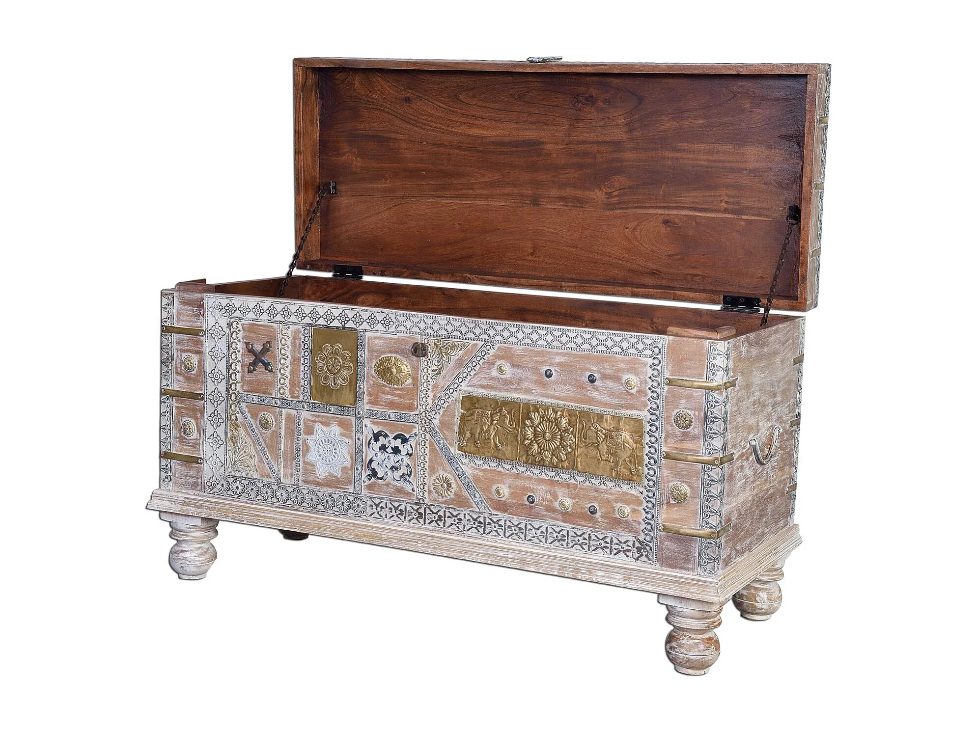 Coffre en bois de manguier et détails en bronze blanc vieilli