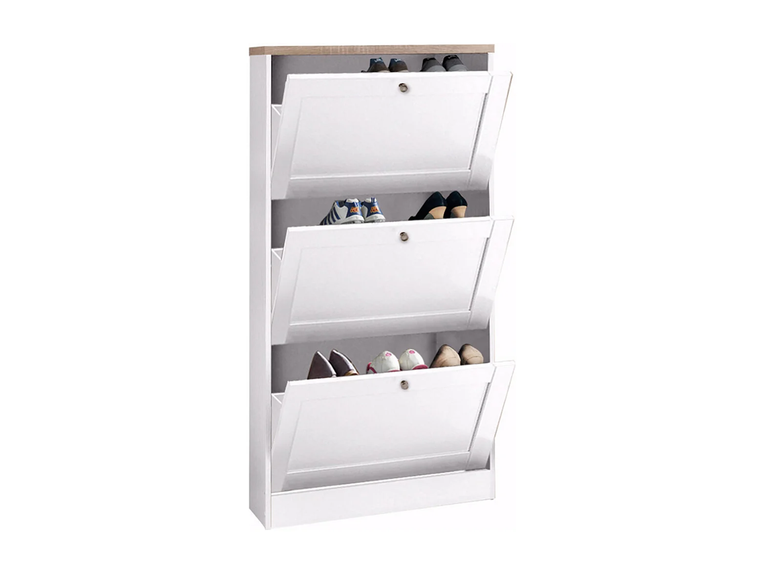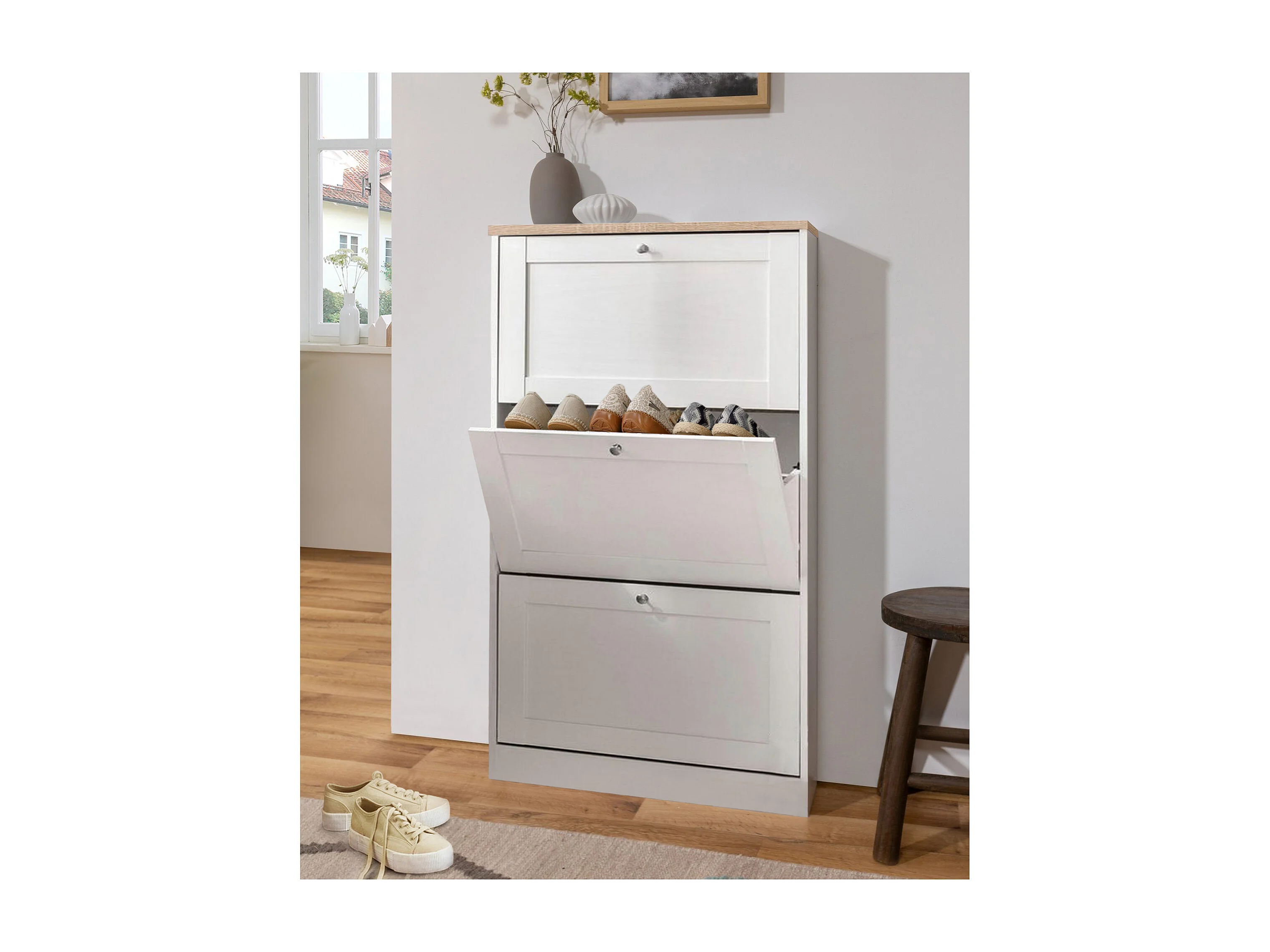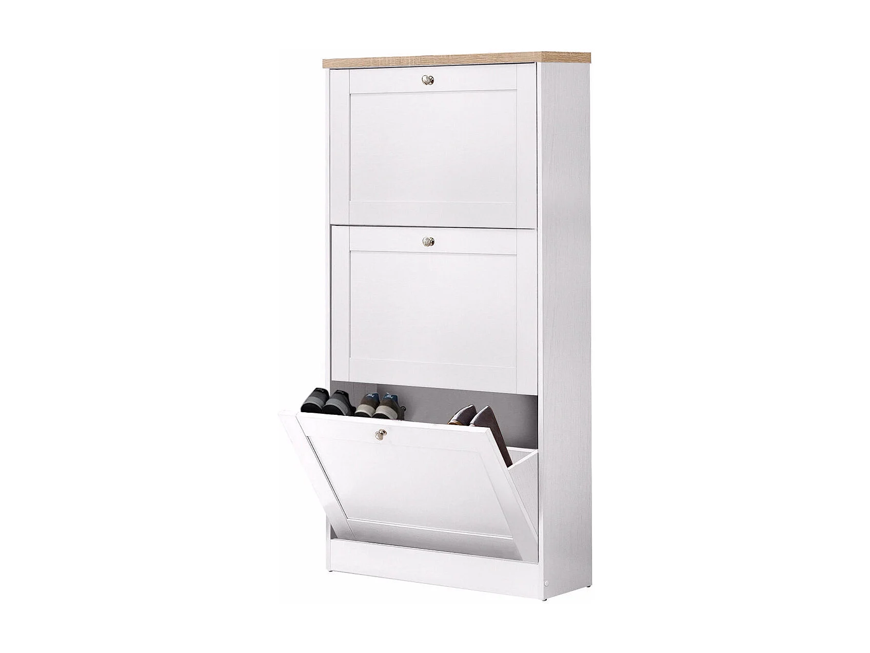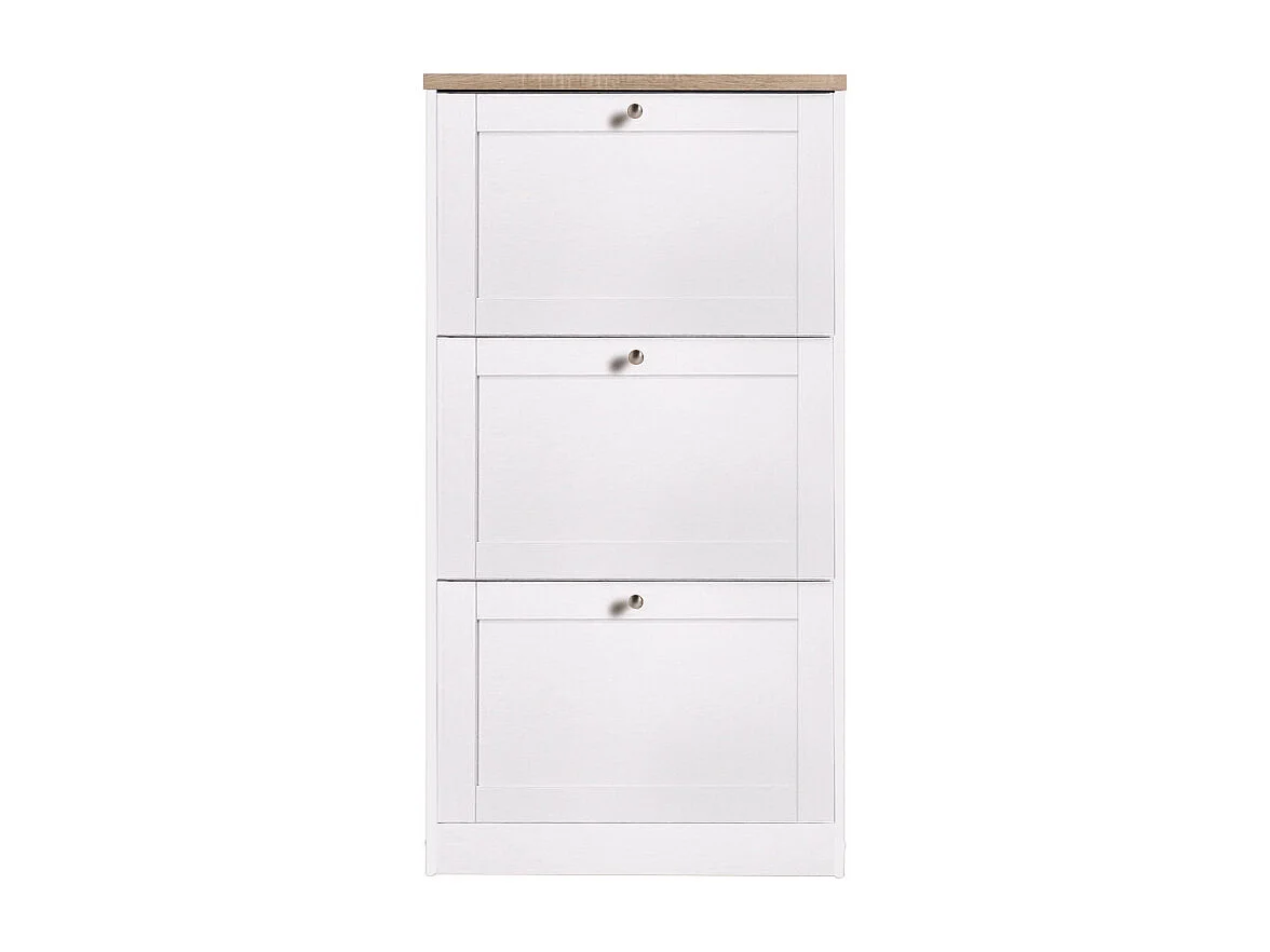 Heide | Coffre à chaussures à 3 portes battantes en effet bois blanc
