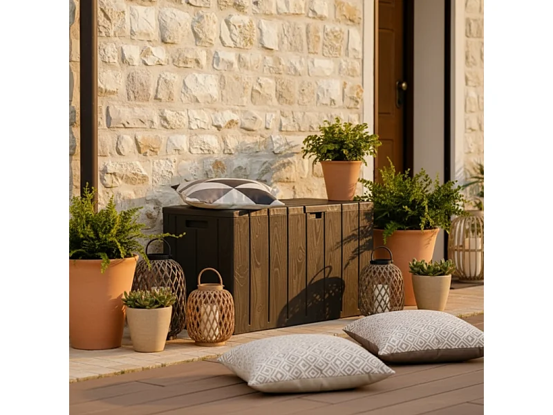 Coffre de jardin TOOMAX BRAVO 270L - 270 L, verrouillable, aspect bois marron
