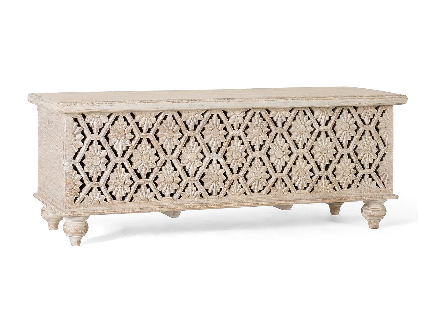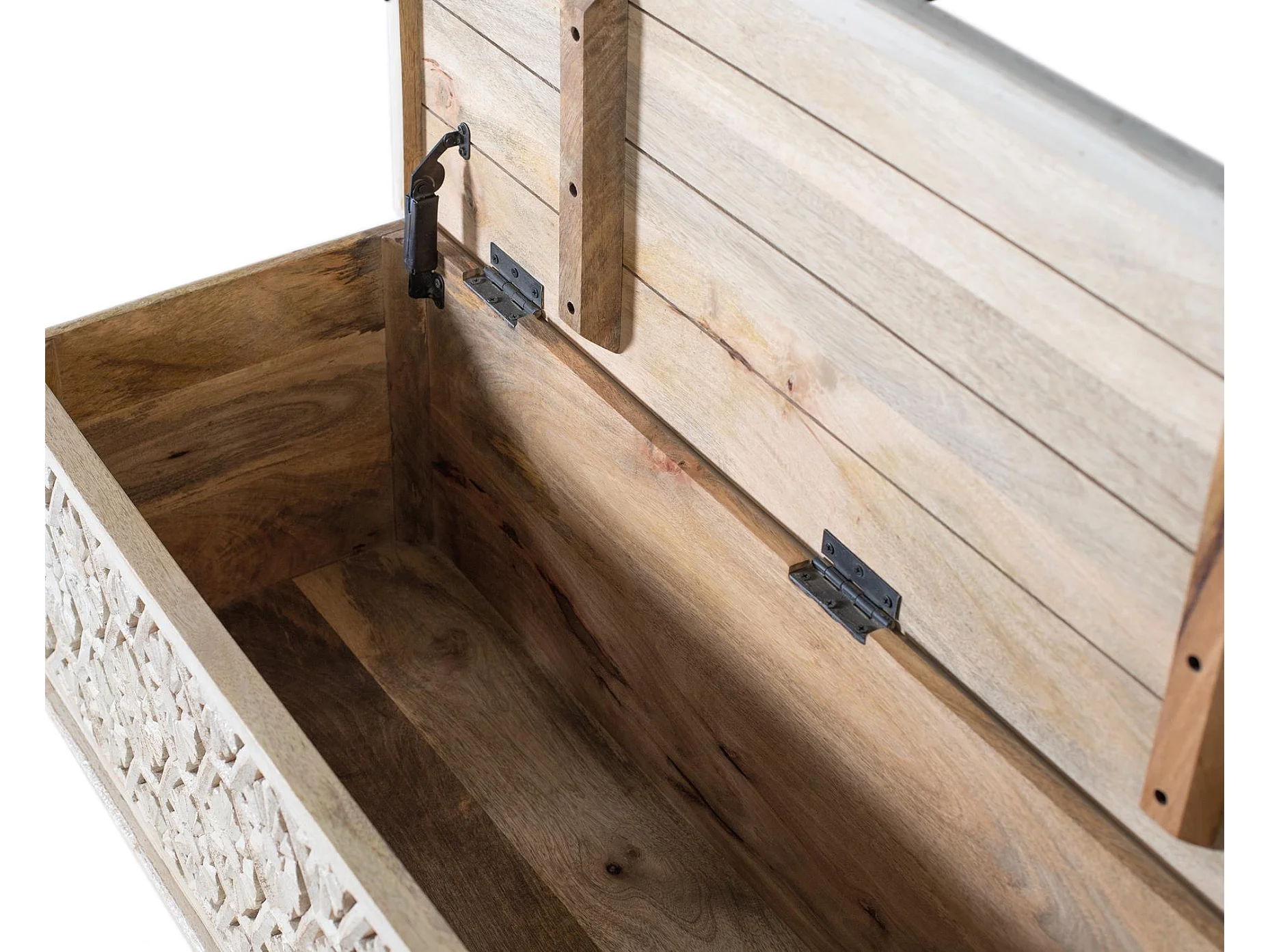 Malle fabriquée artisanalement en bois de manguier avec ouverture