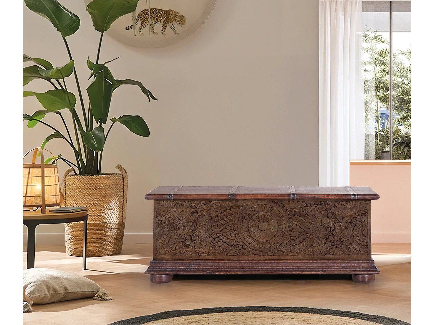 Coffre en bois de manguier couleur noyer
