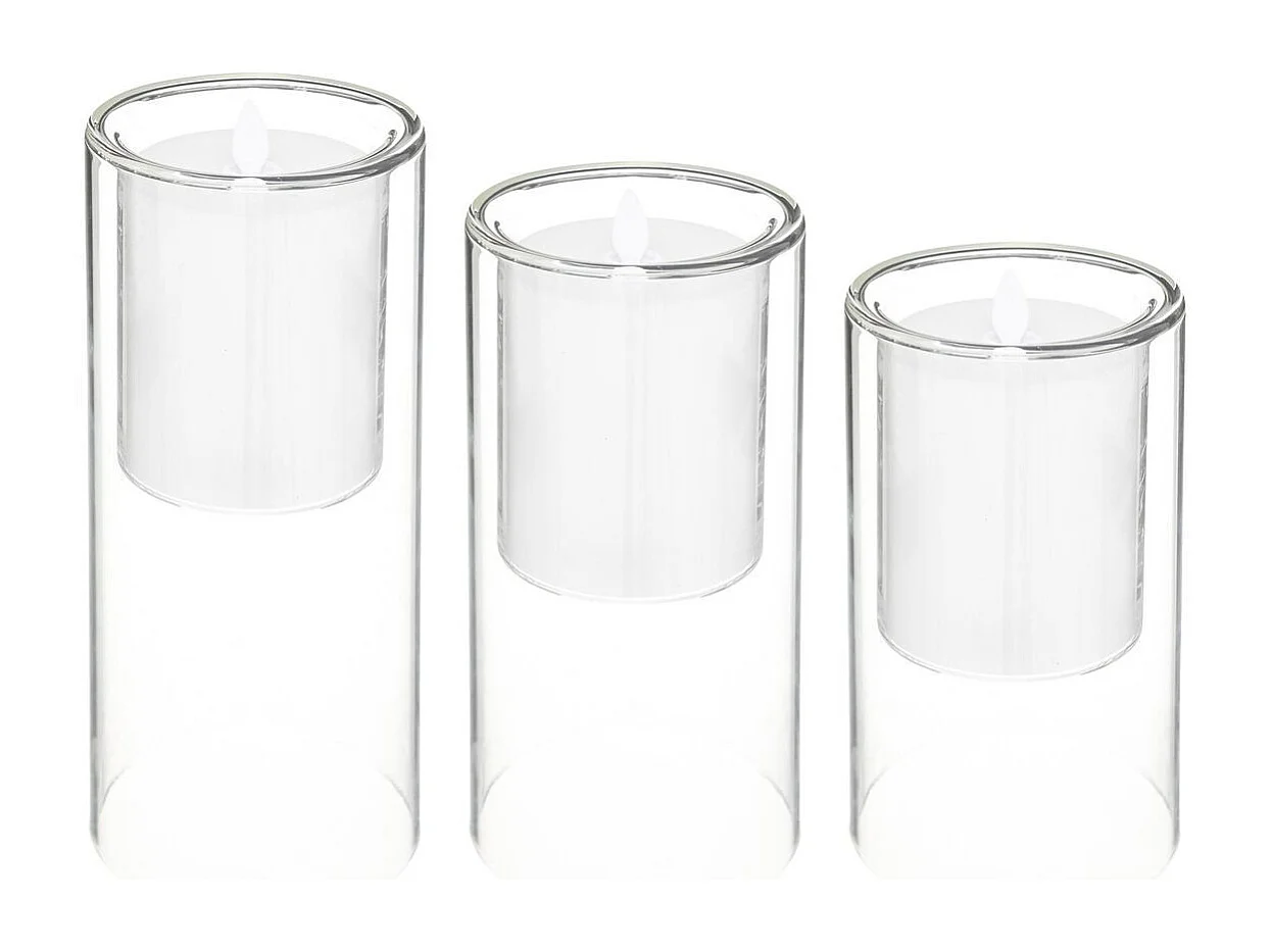 Lot de 3 Bougies Led "Double Verre" 25cm Transparent