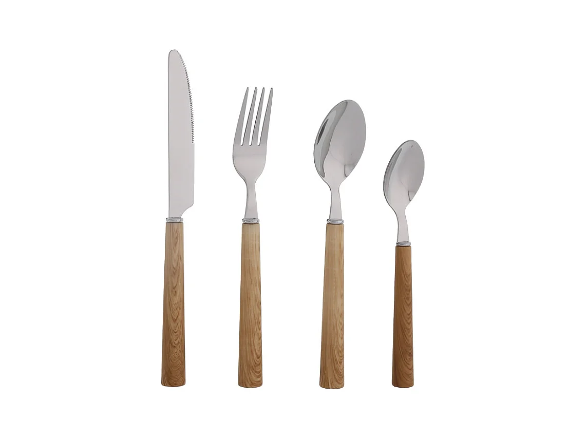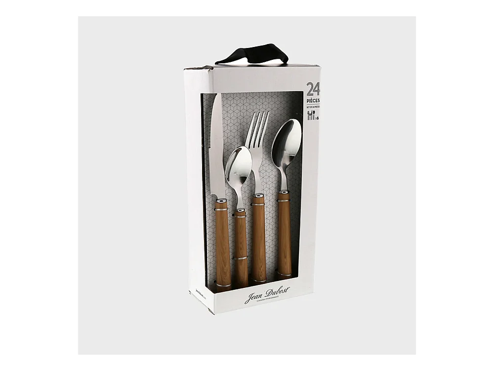Coffret ménagère de 24 pièces round façon bois