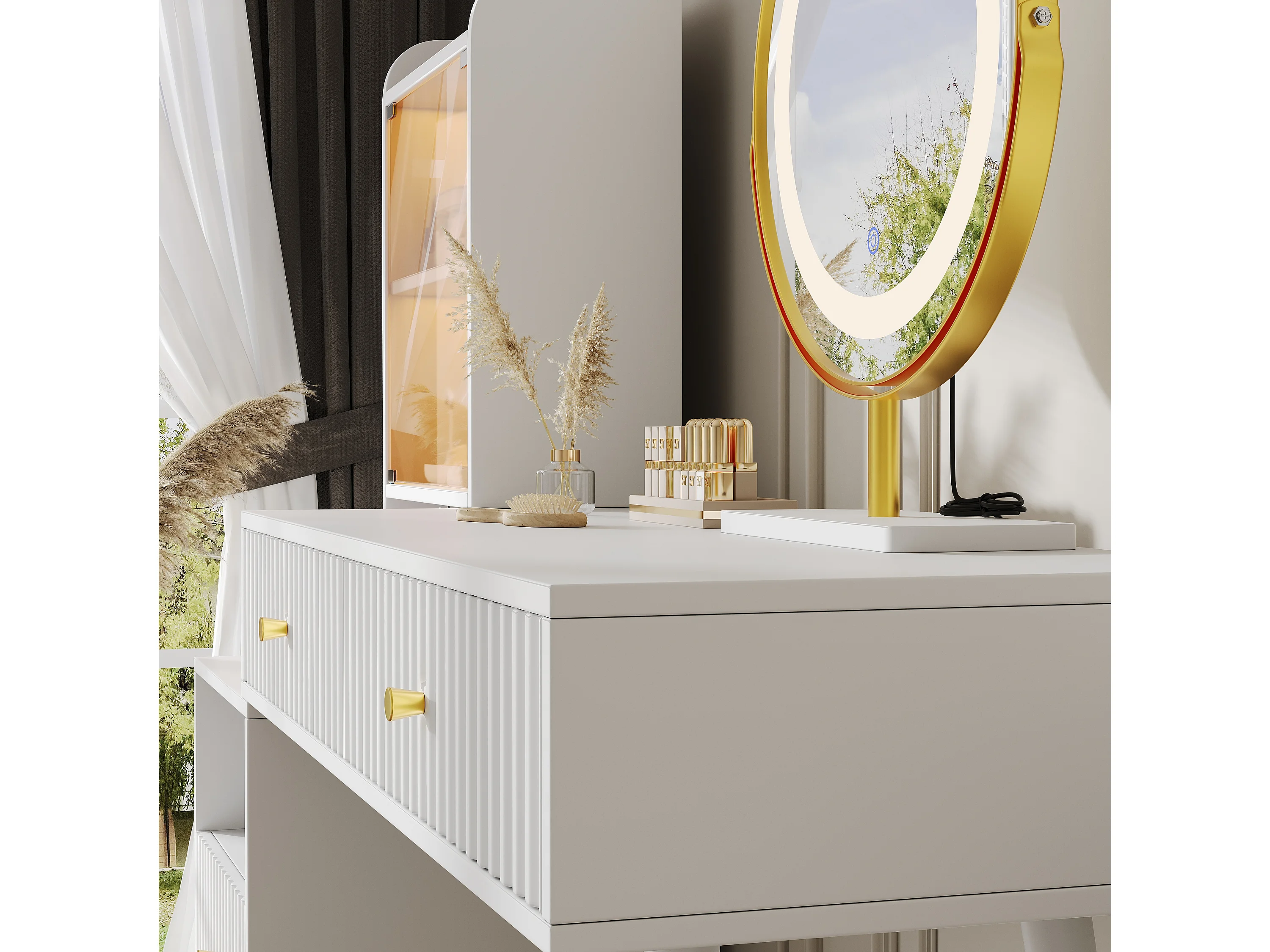 Coiffeuse avec Leds - 80 x 40 x 134 cm - avec 3 tiroirs + 1 porte + 1 miroir - MDF - blanc