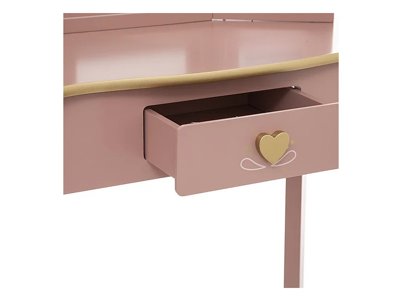 Coiffeuse enfant design girly avec motifs à coeur - tabouret inclus - dim. 60L x 36l x 88H cm - tiroir, miroir - MDF - rose